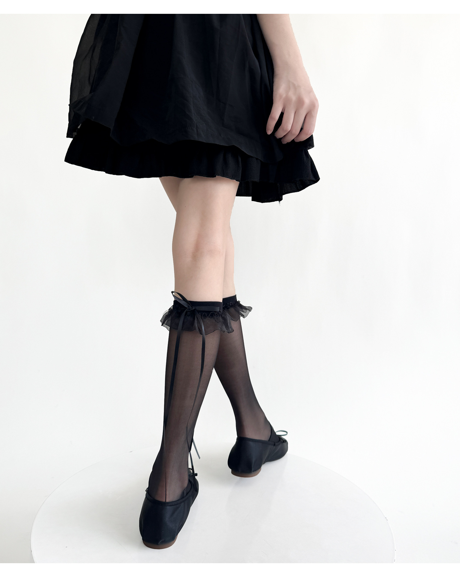 春夏季lolita超薄透明纱芭蕾风甜美花边任意剪小腿袜飘带蝴蝶结女
