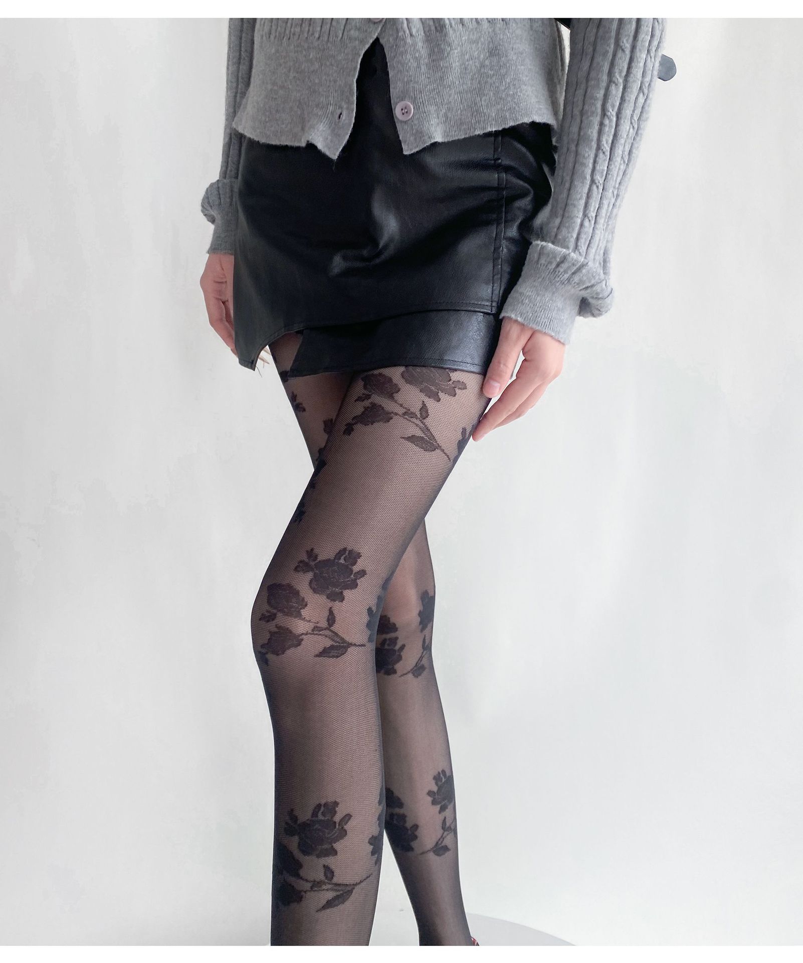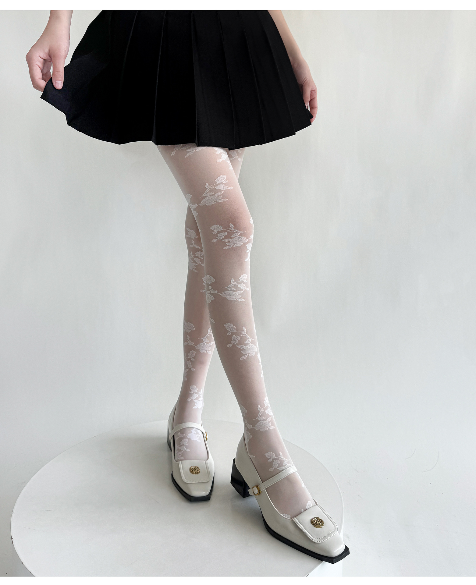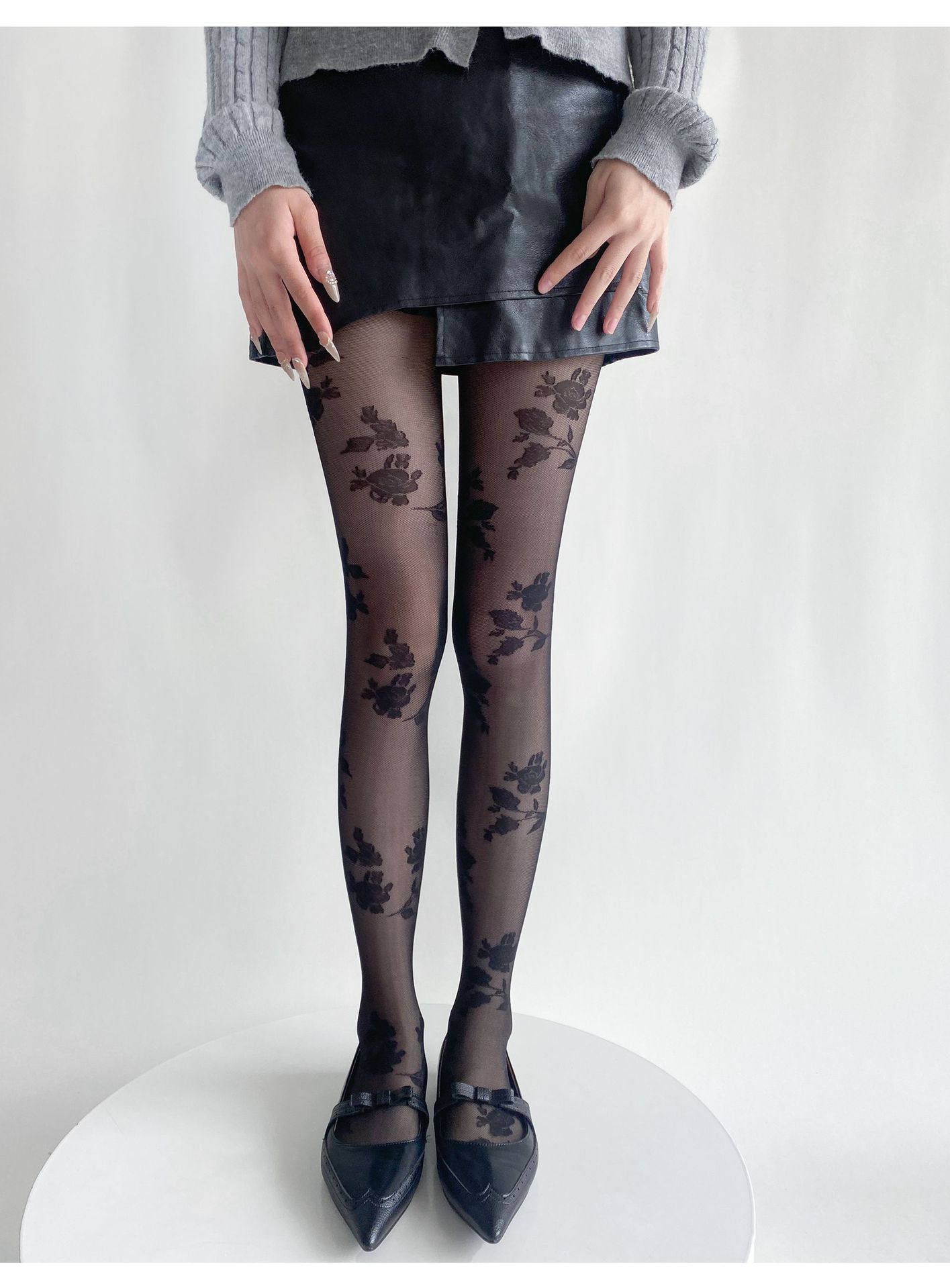 春夏薄款ins复古奶白氨纶玫瑰提花连裤袜超薄透肉暗黑系丝袜