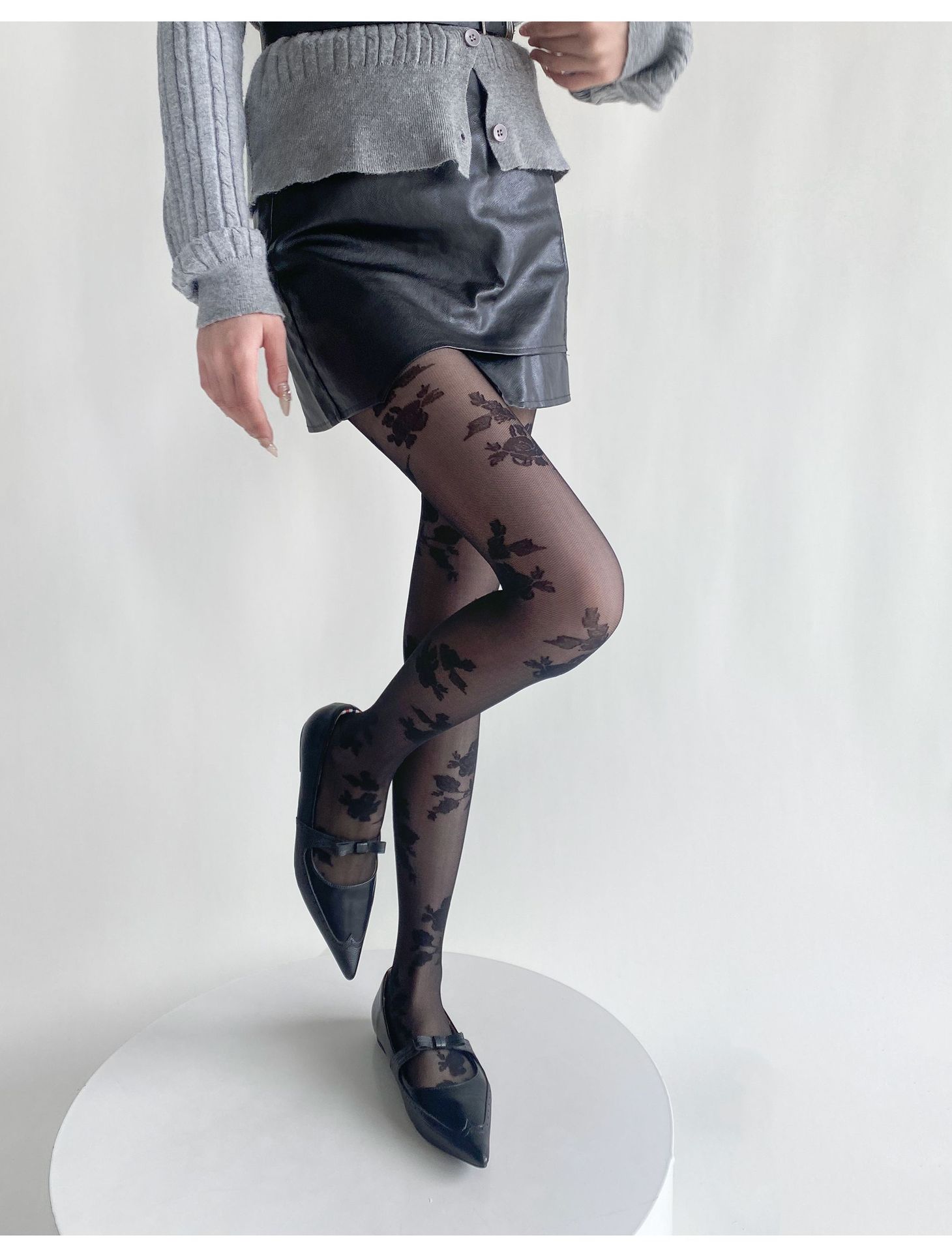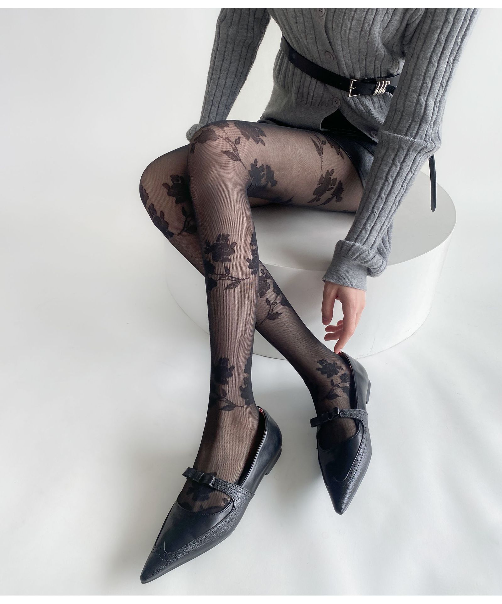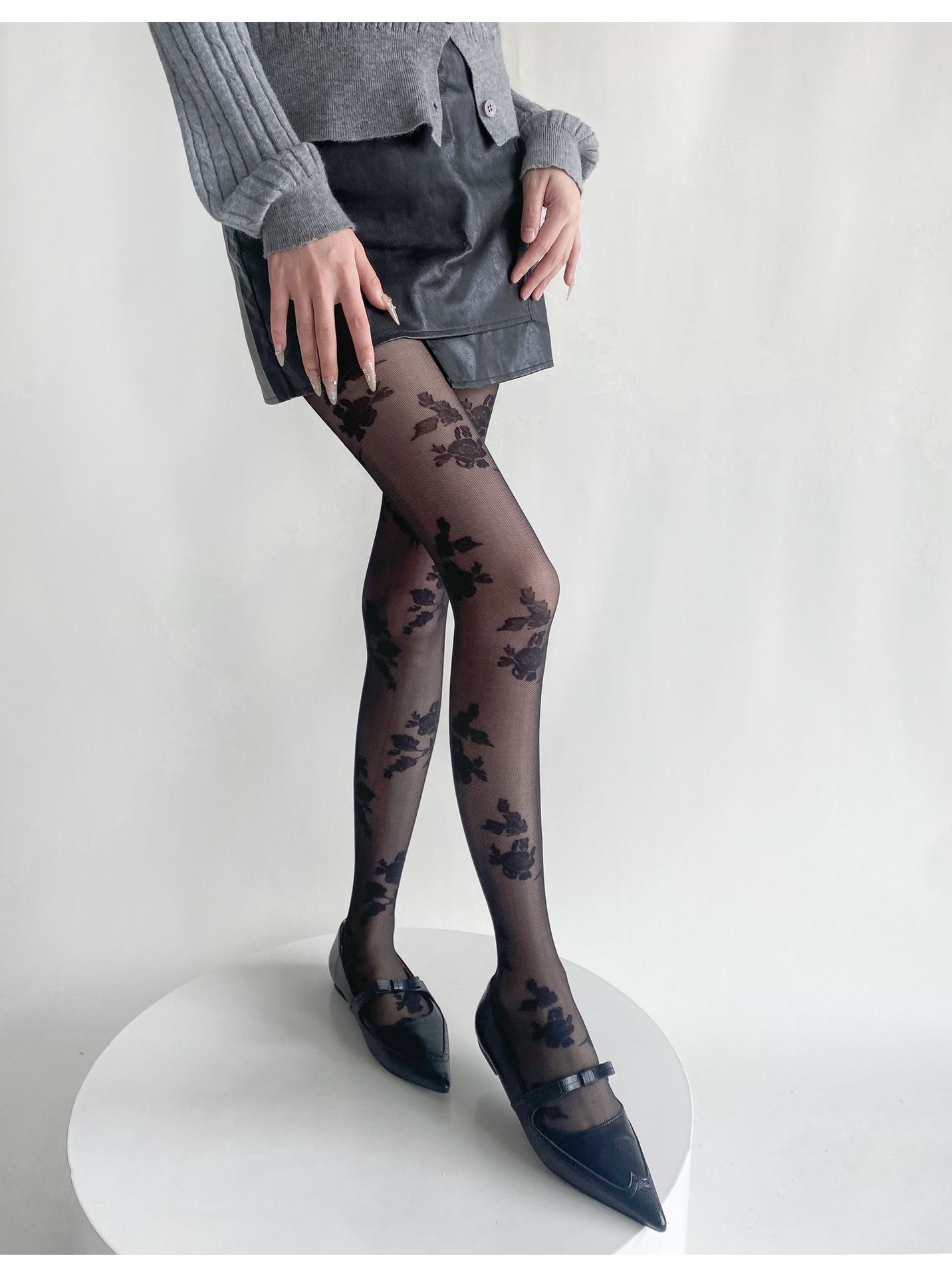 春夏薄款ins复古奶白氨纶玫瑰提花连裤袜超薄透肉暗黑系丝袜