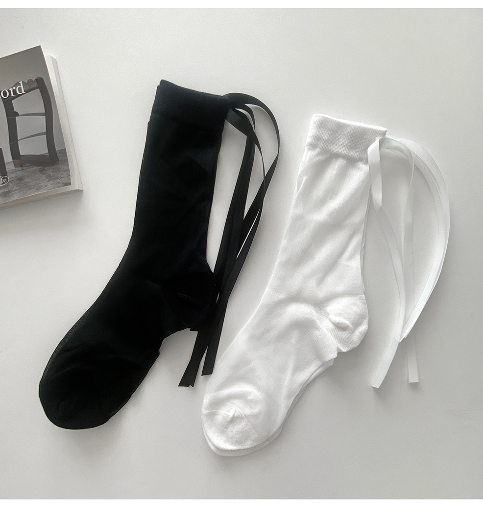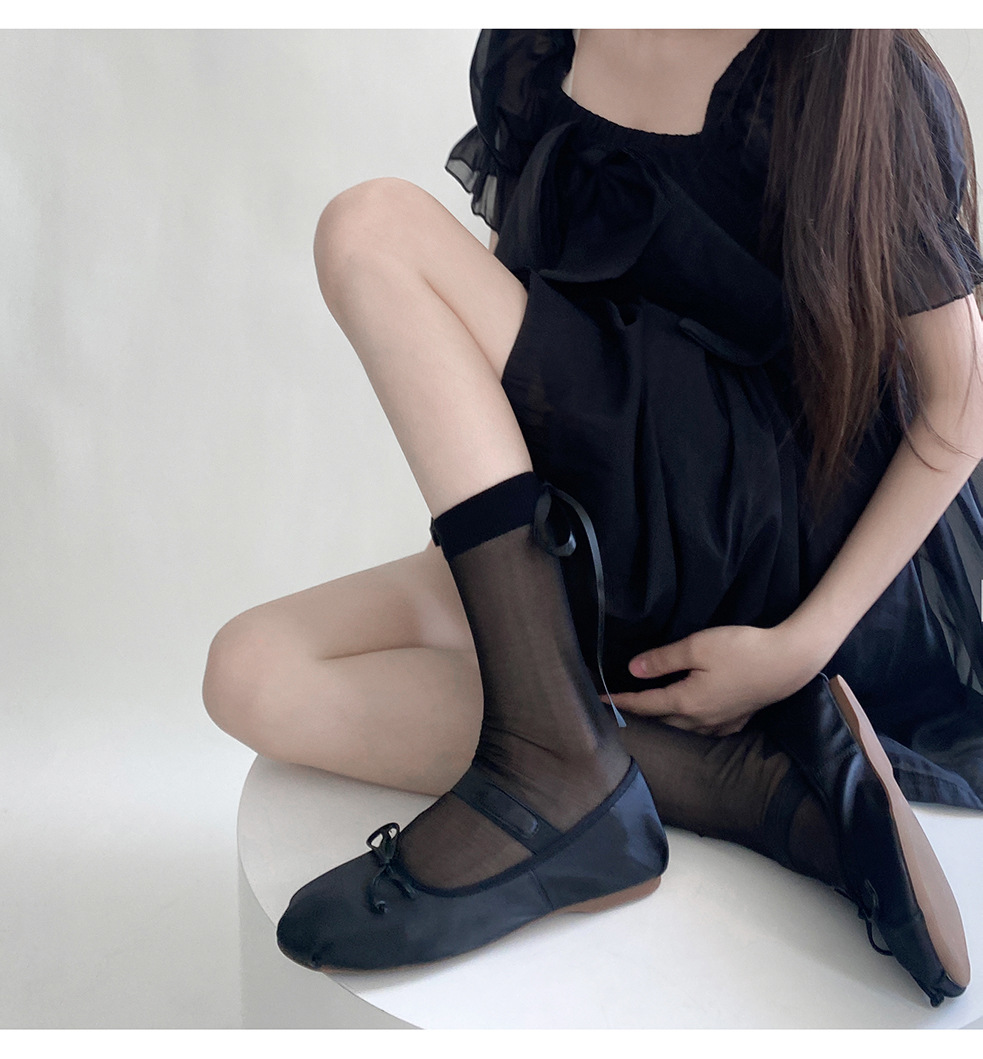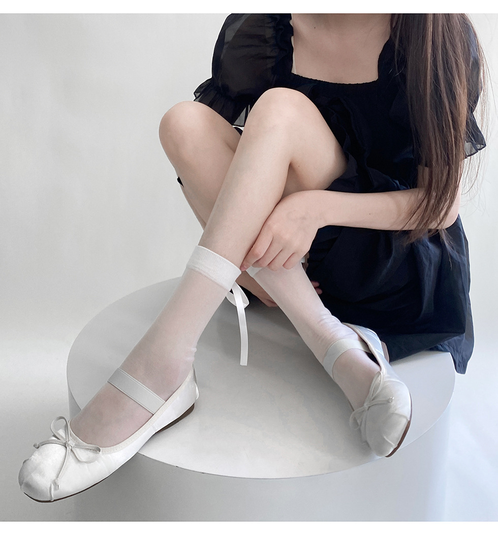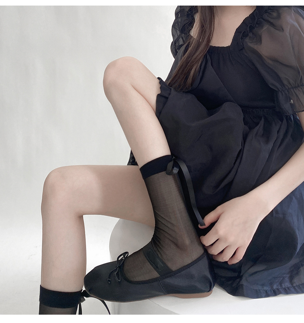 春夏小香风半透后丝带袜短筒堆堆袜东大门时髦蝴蝶结透明中筒袜潮