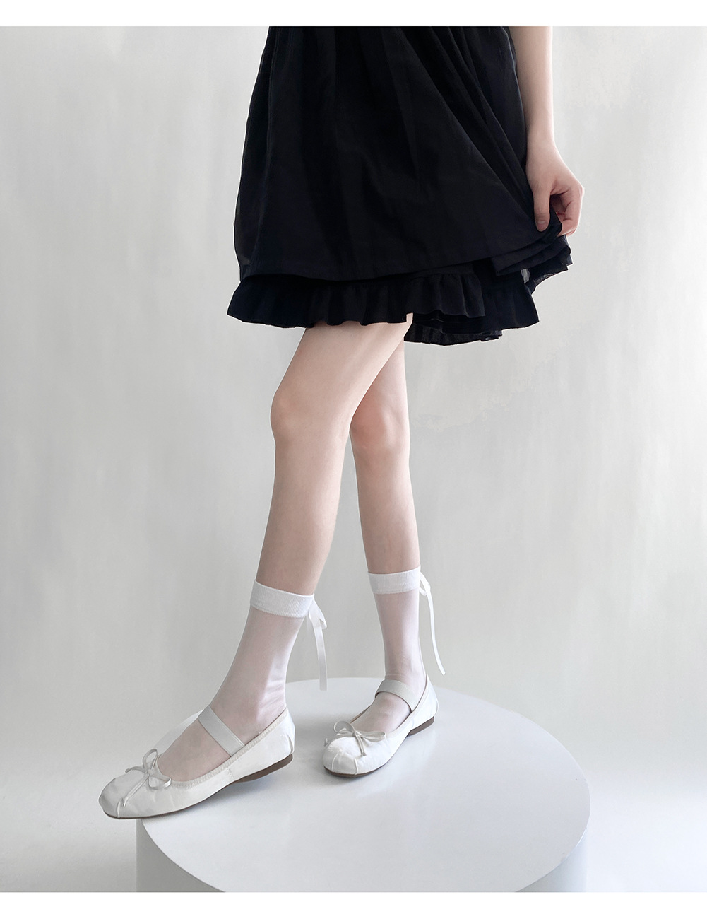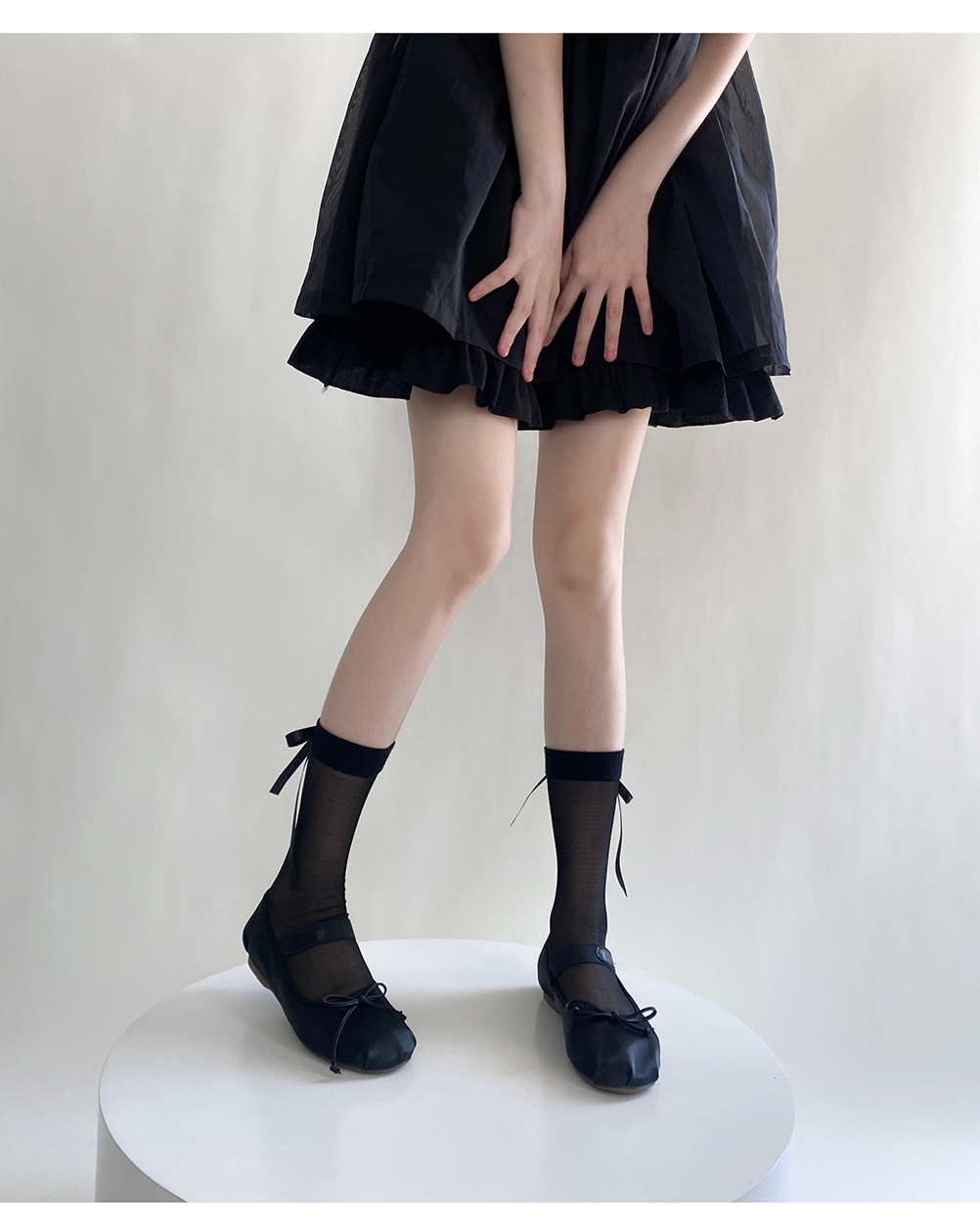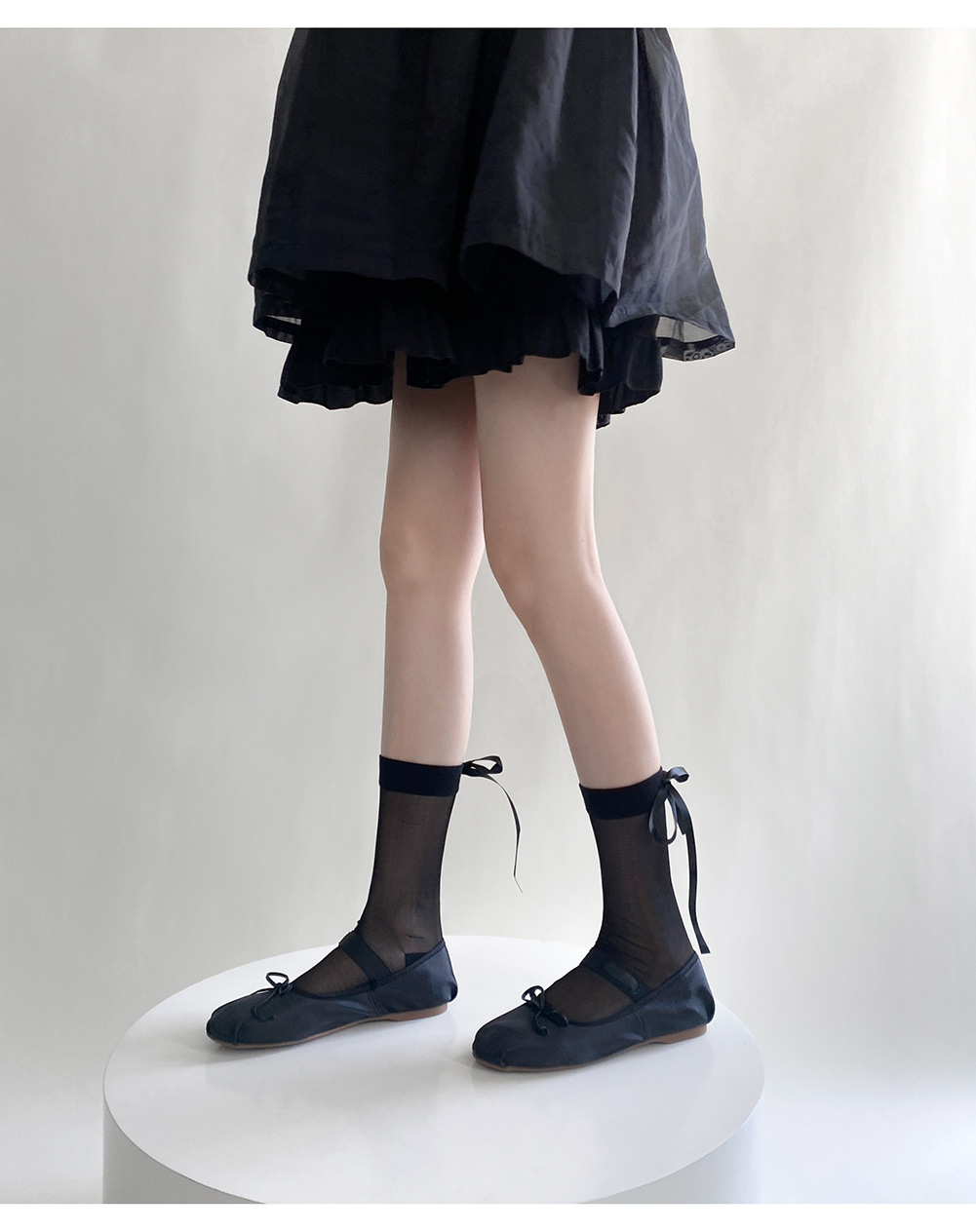 春夏小香风半透后丝带袜短筒堆堆袜东大门时髦蝴蝶结透明中筒袜潮