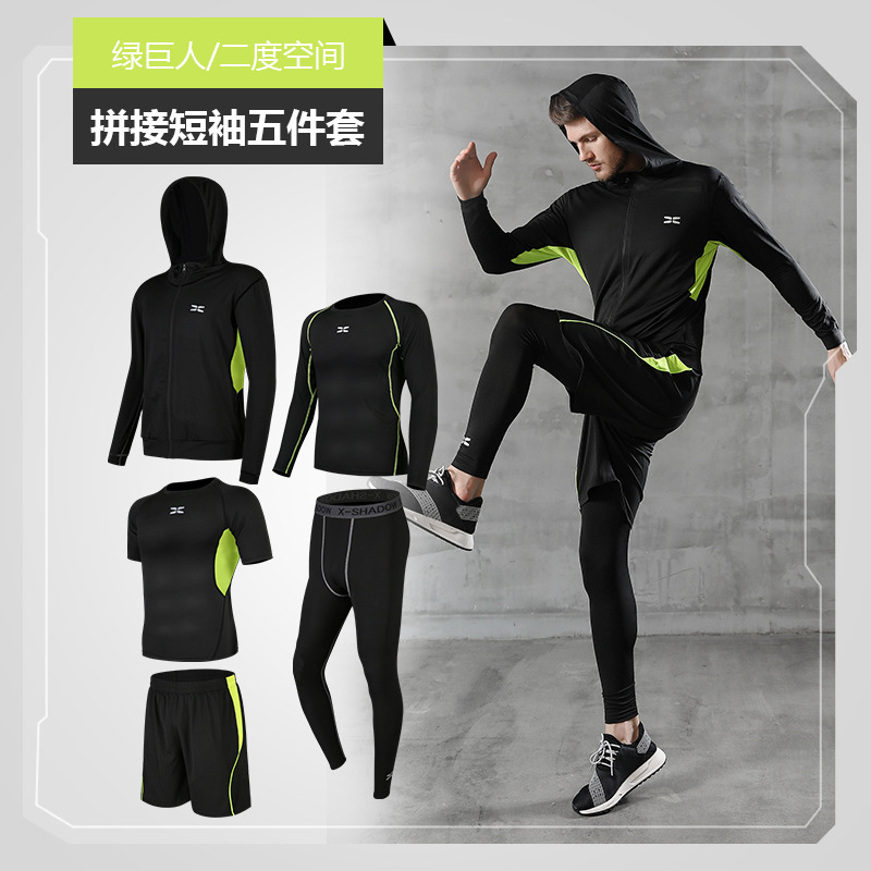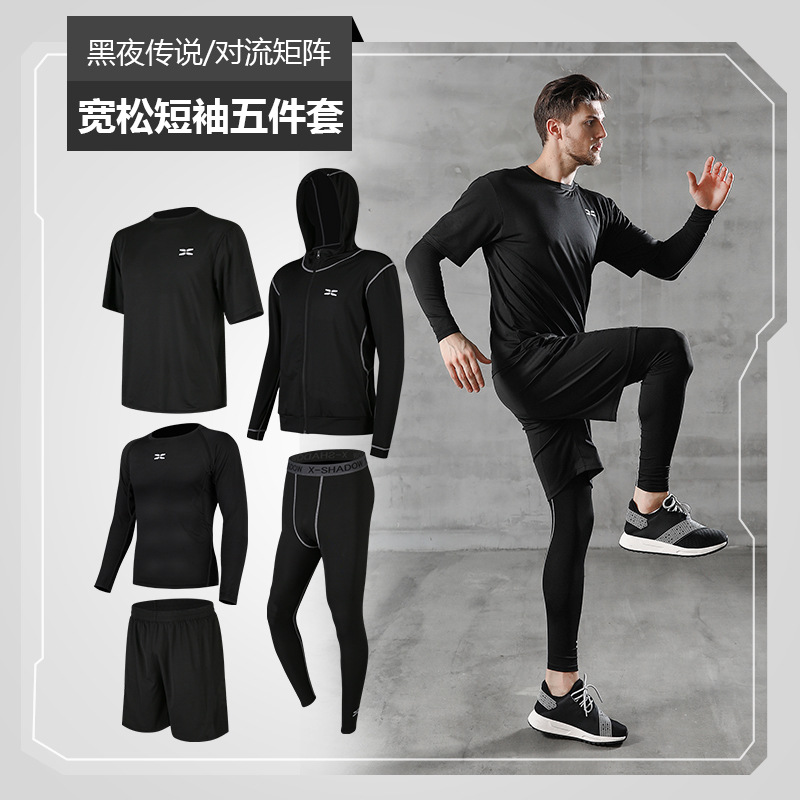 聚衣堂健身服男紧身衣健身房步速干篮球运动套装训练服夏季五件套