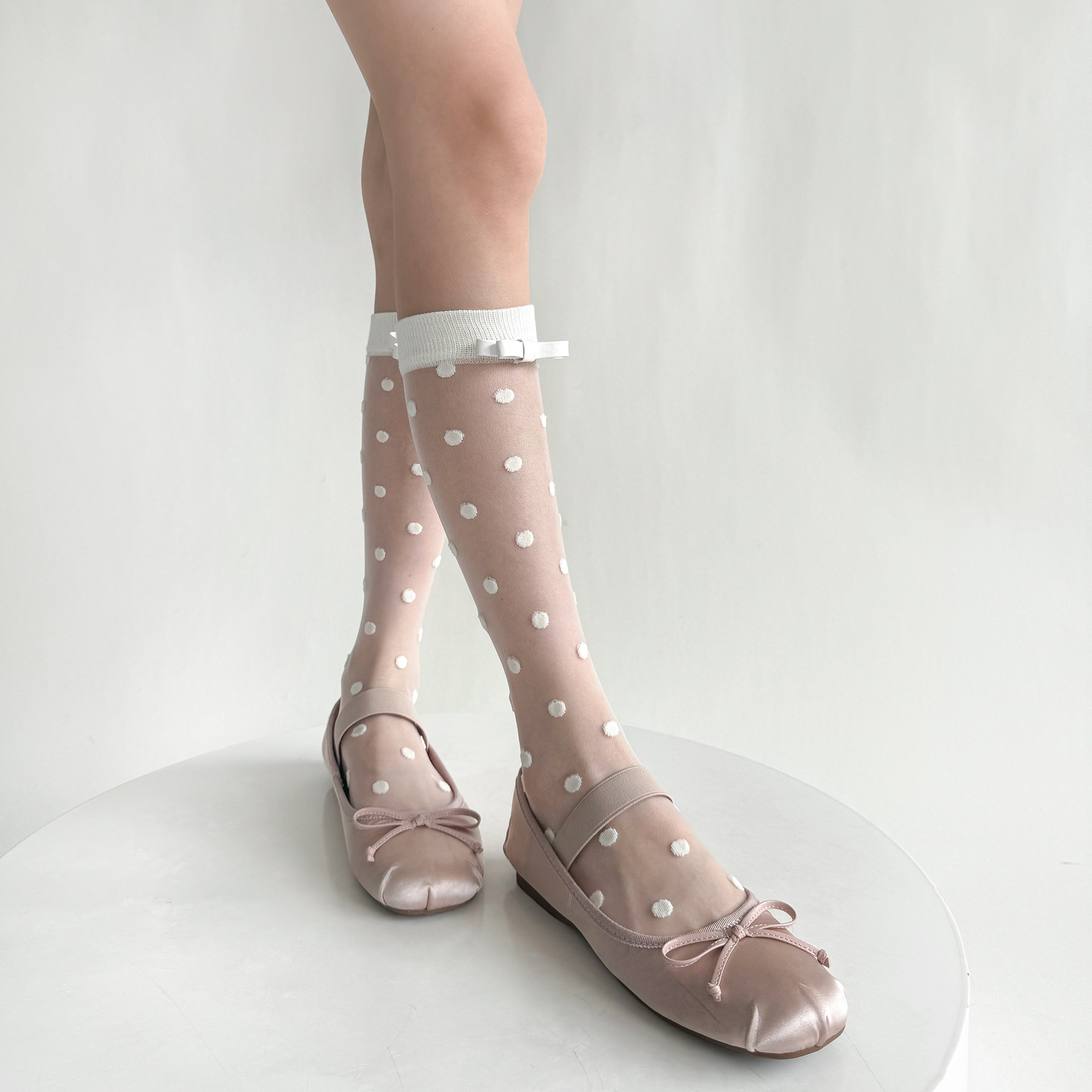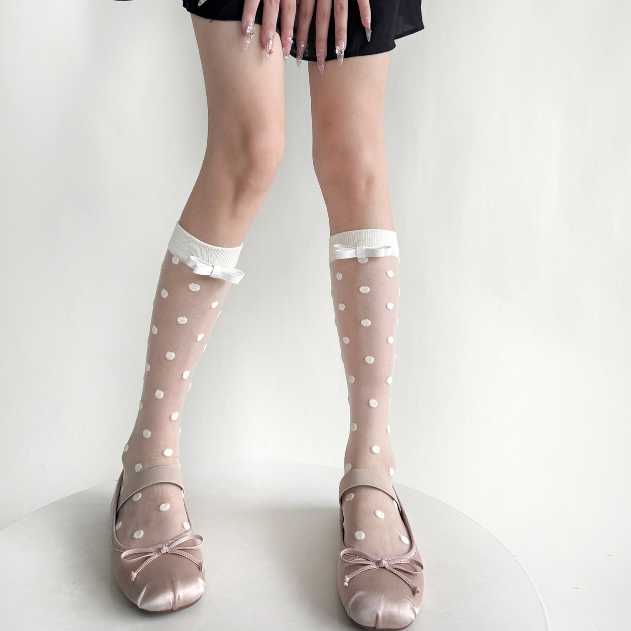 春夏季超薄透肉波点卡丝小腿袜女纯色日系jk蝴蝶结甜美辣妹中筒袜