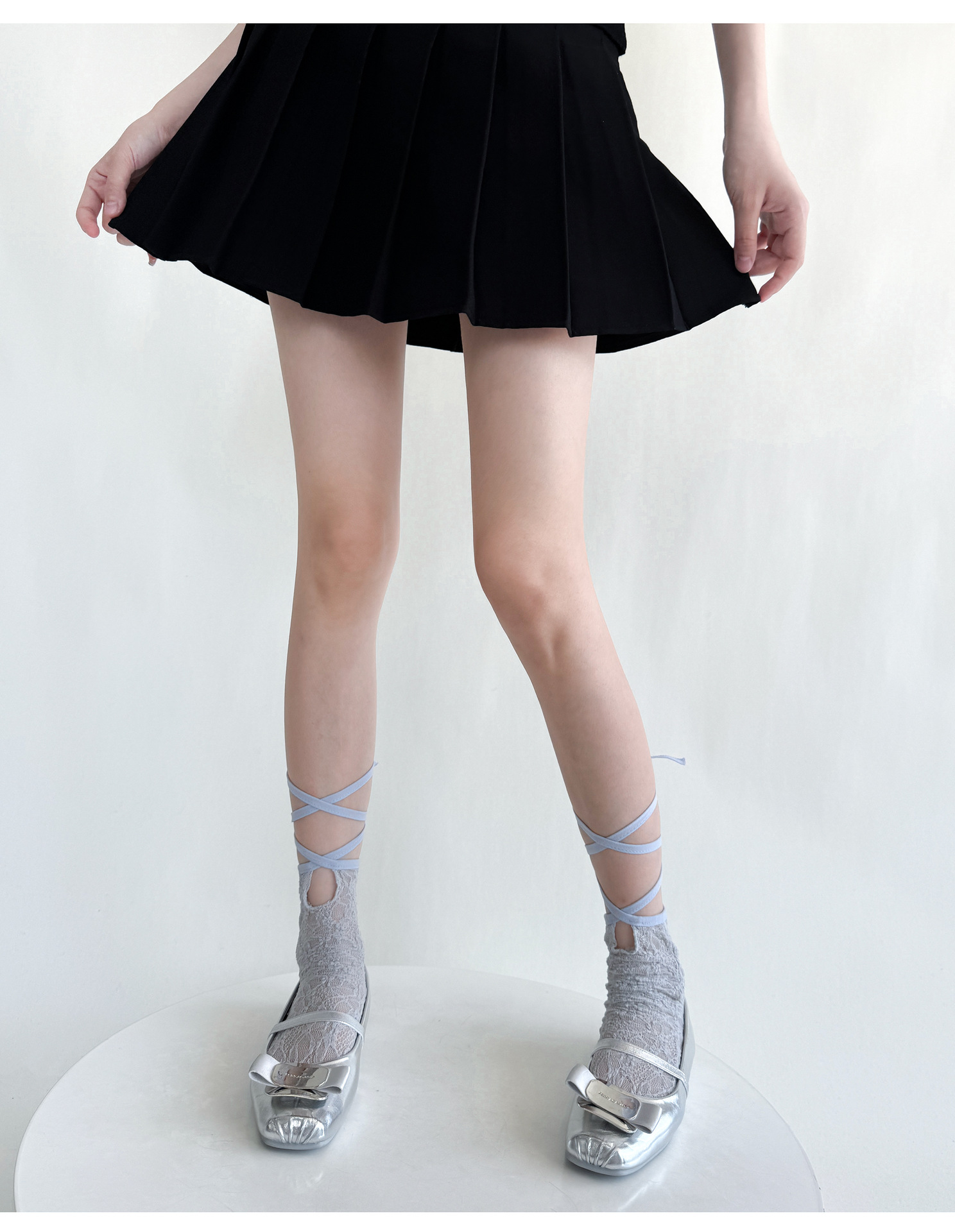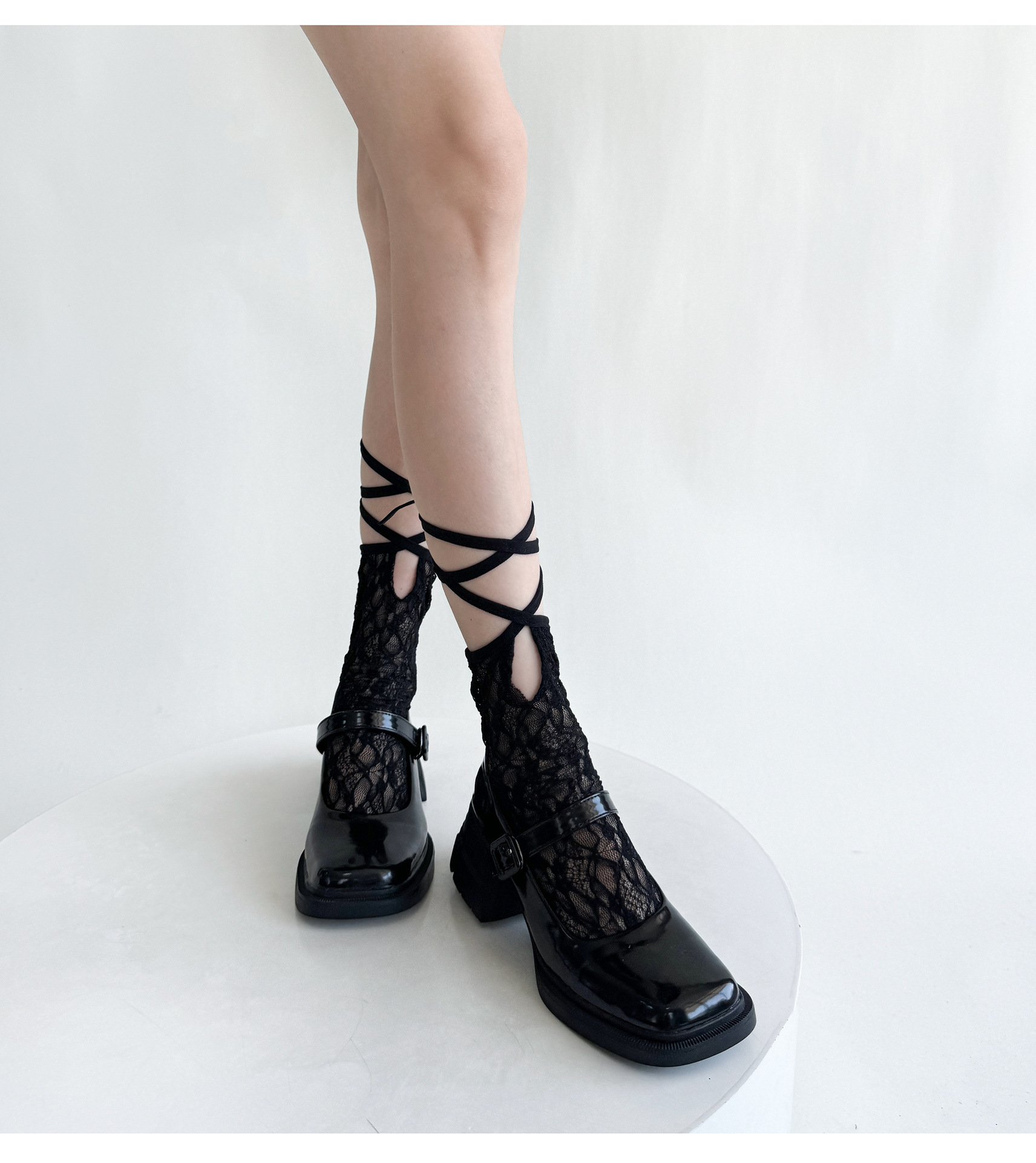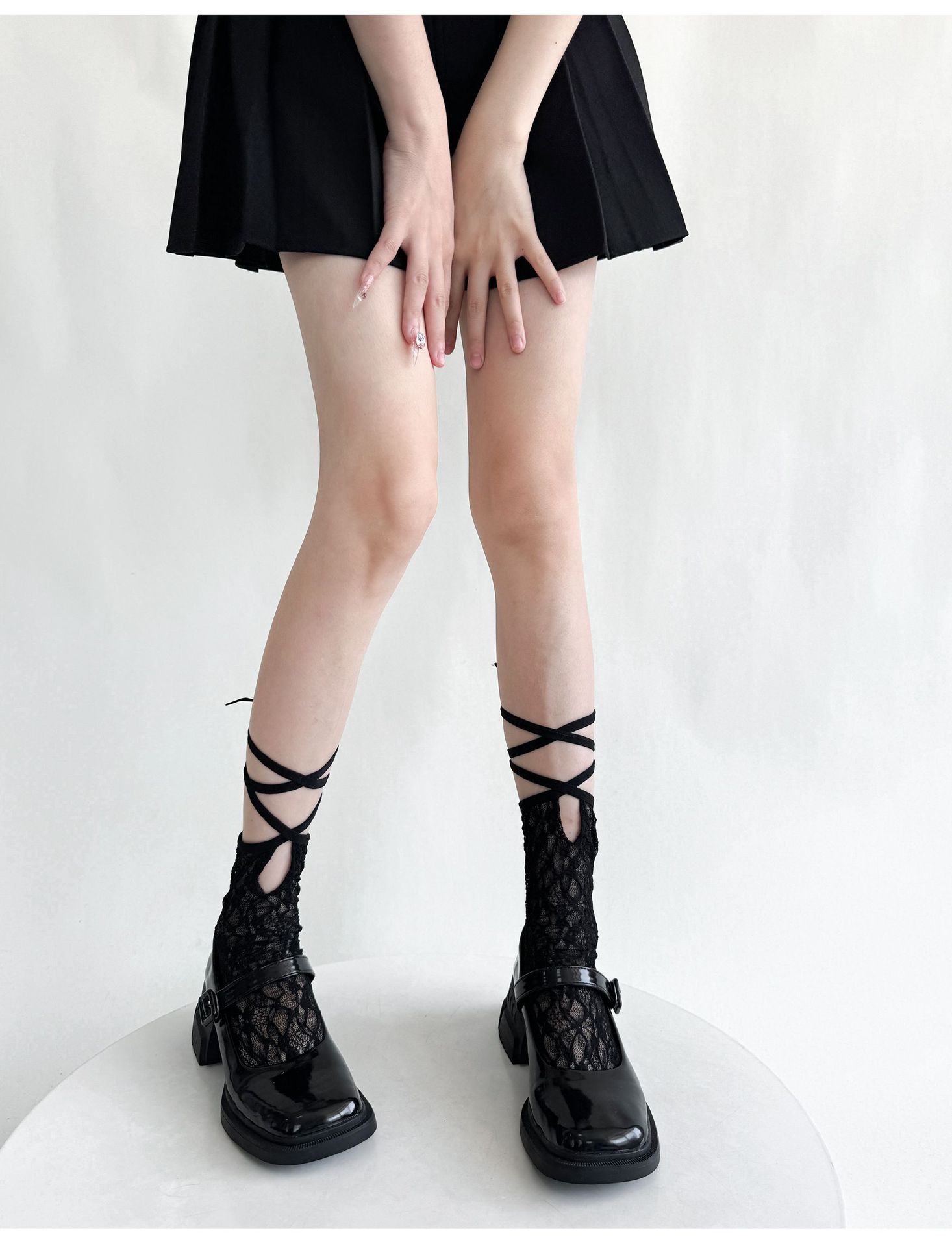 夏季小众少女蕾丝中筒袜绑带设计网纱薄款日系洛丽塔纯色镂空短袜