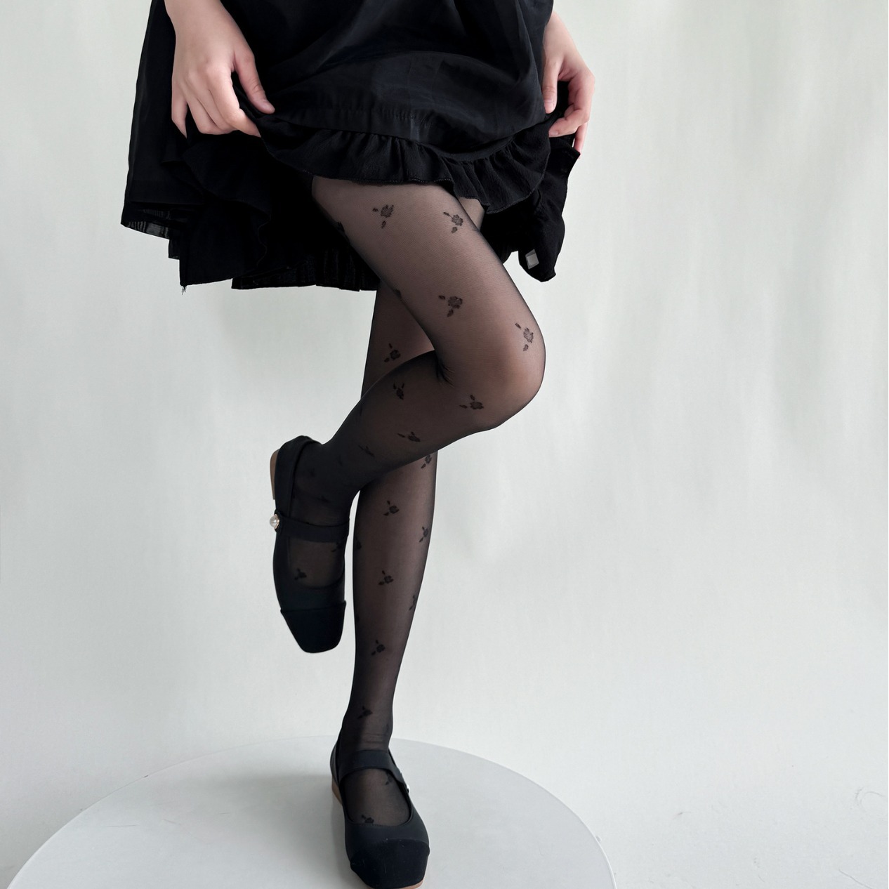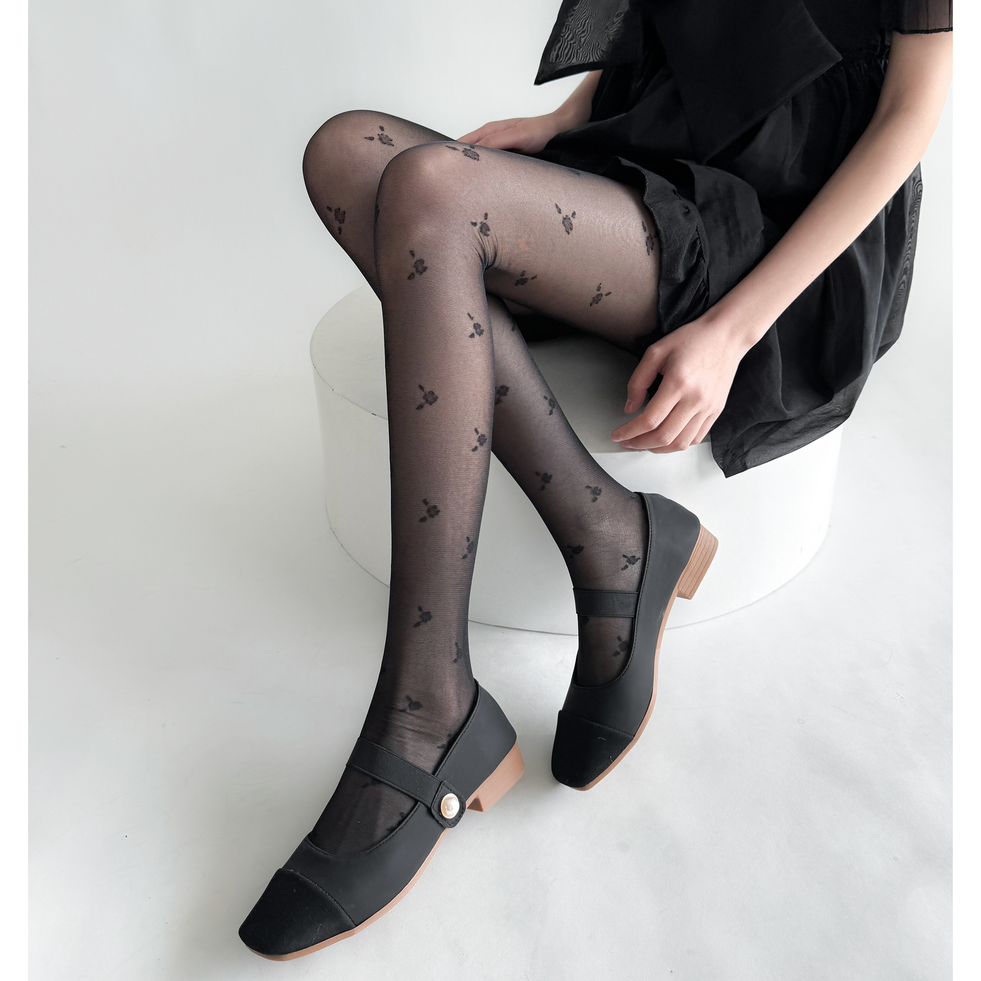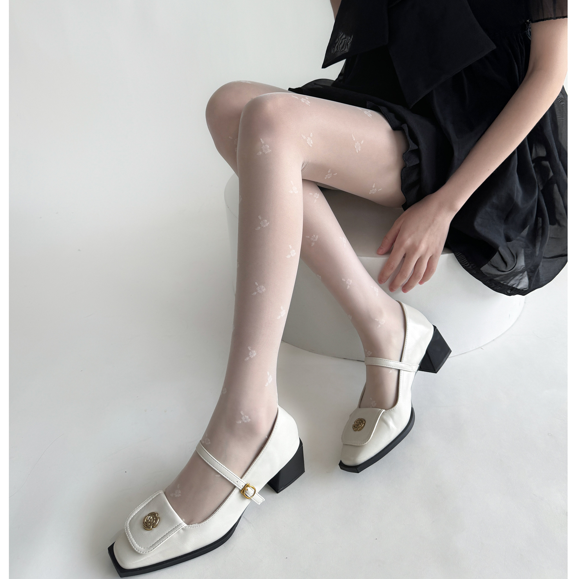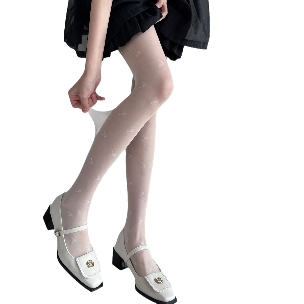 春夏季法式少女简约黑色小碎花连裤袜薄款lolita奶白色提花丝袜女