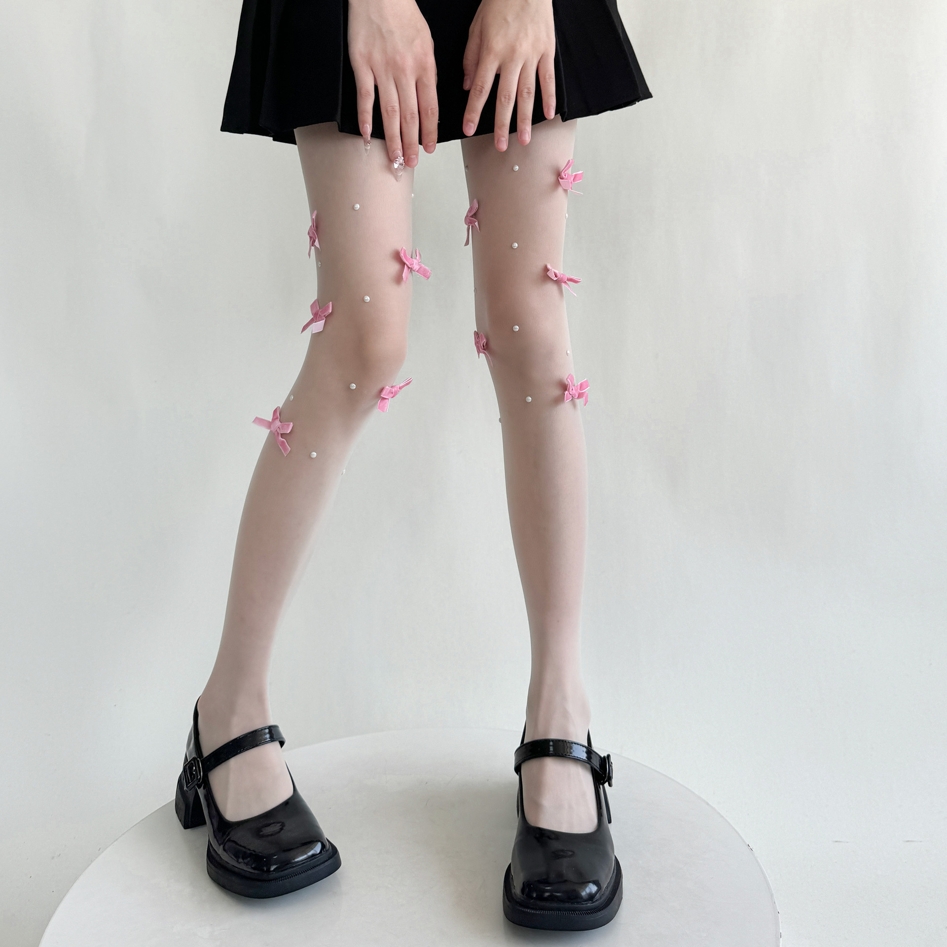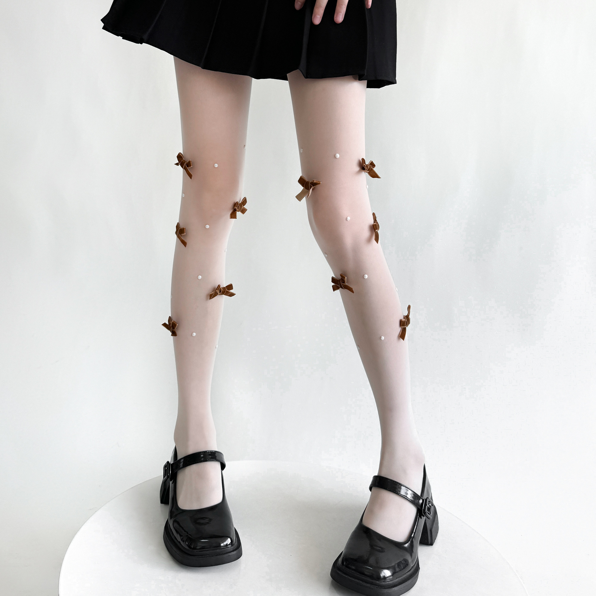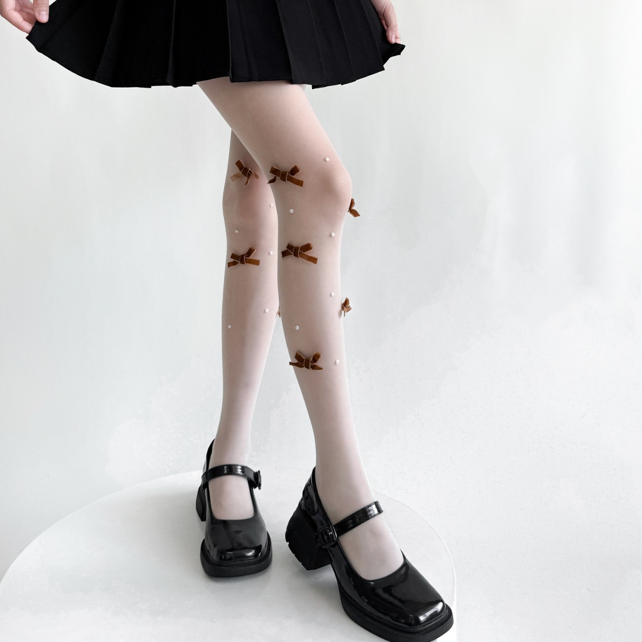 春夏季纯欲甜美少女芭蕾风奶白珍珠丝绒蝴蝶结洛丽塔超薄显瘦丝袜