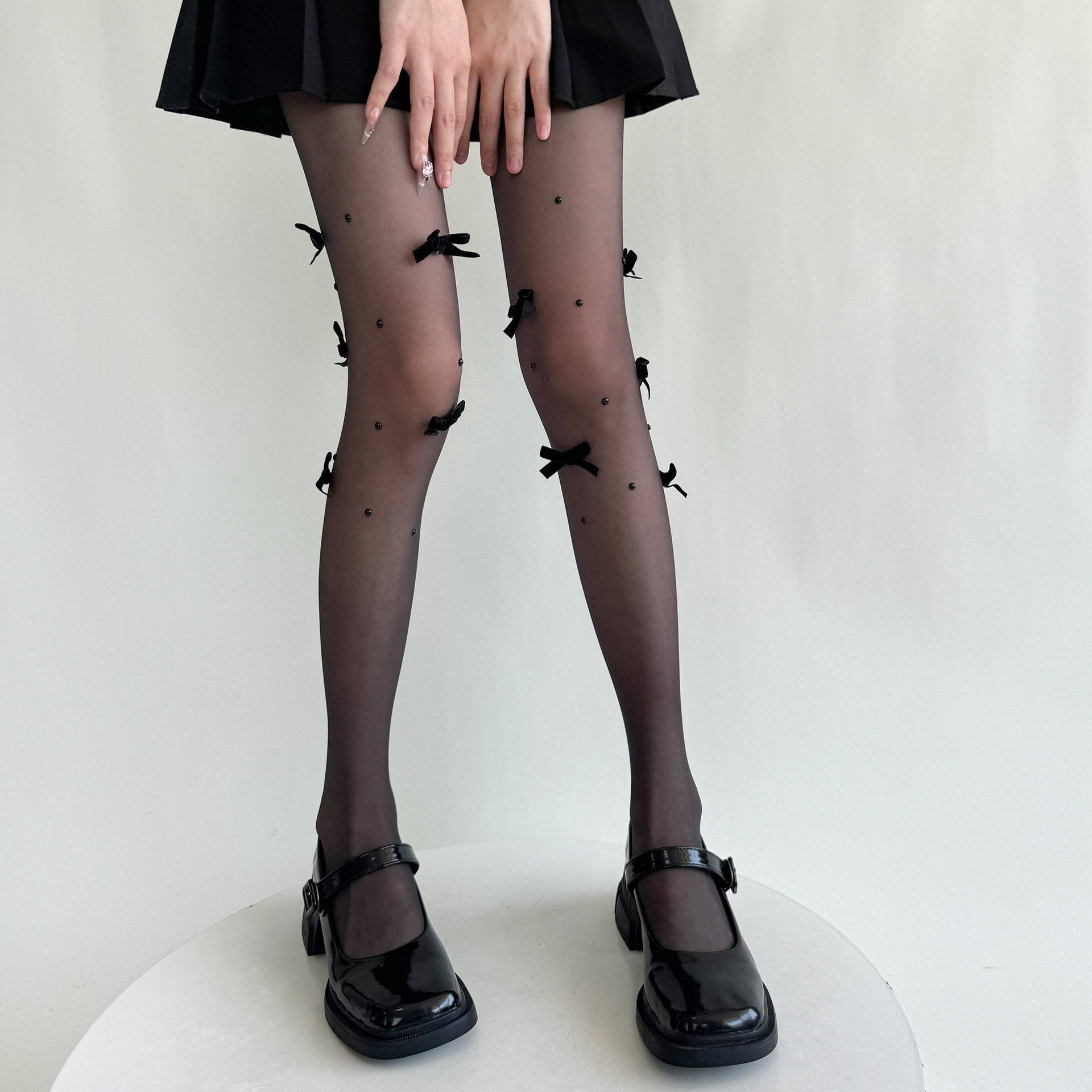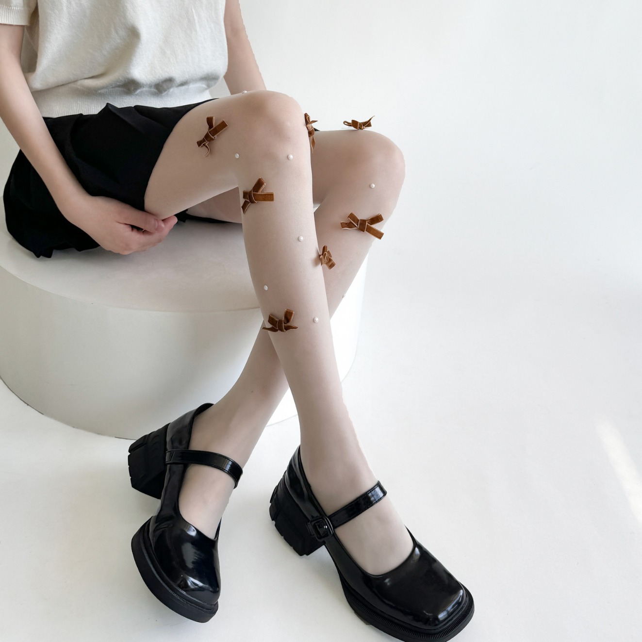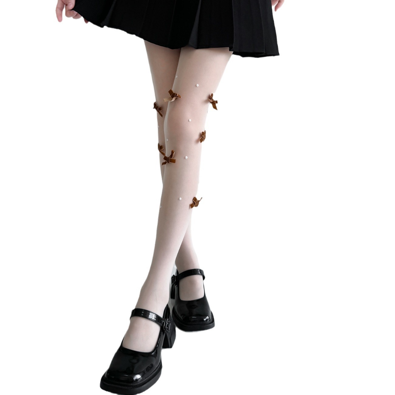 春夏季纯欲甜美少女芭蕾风奶白珍珠丝绒蝴蝶结洛丽塔超薄显瘦丝袜