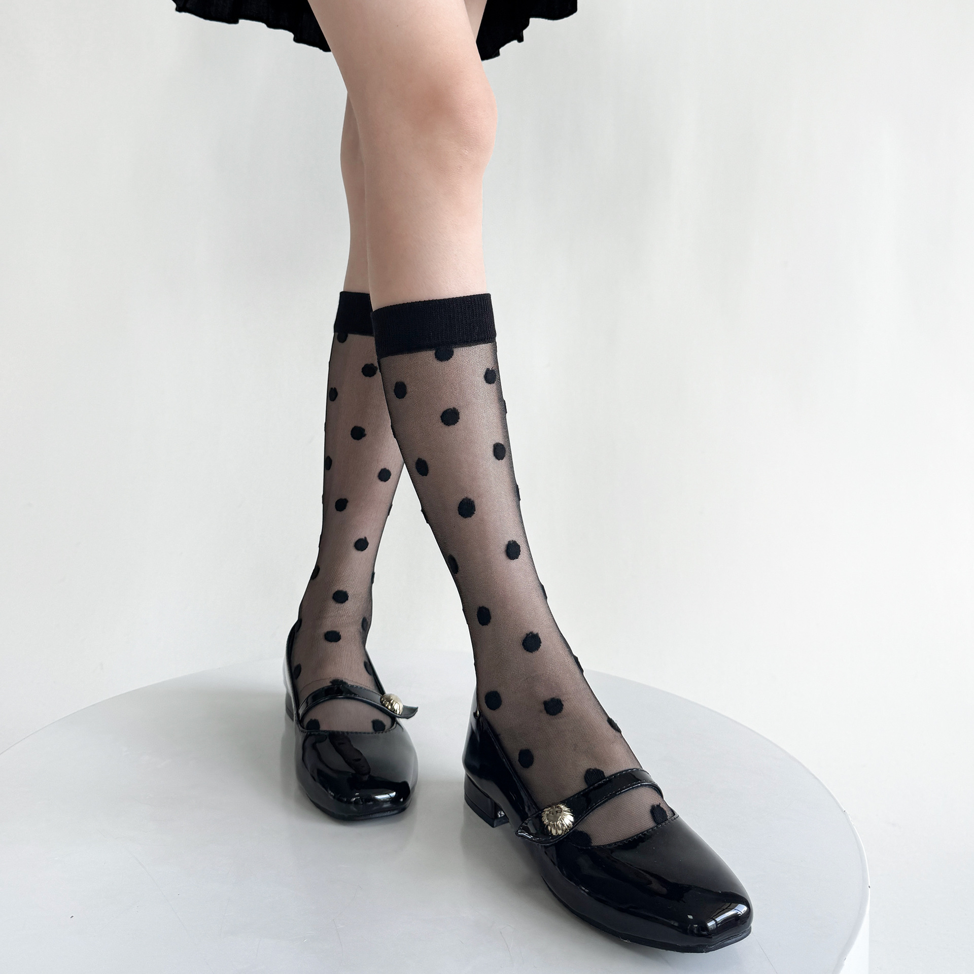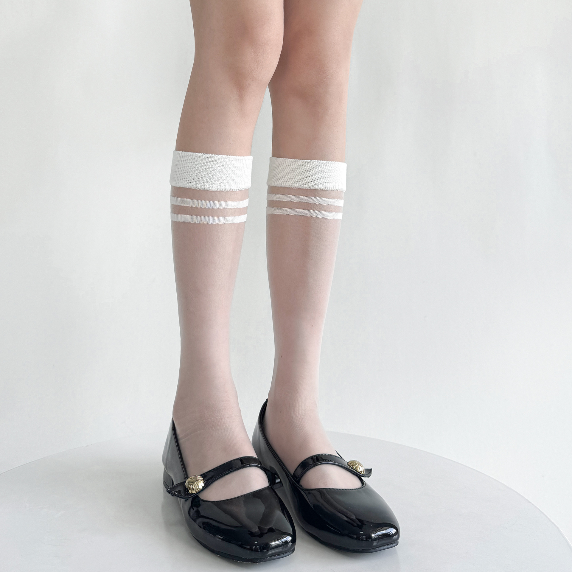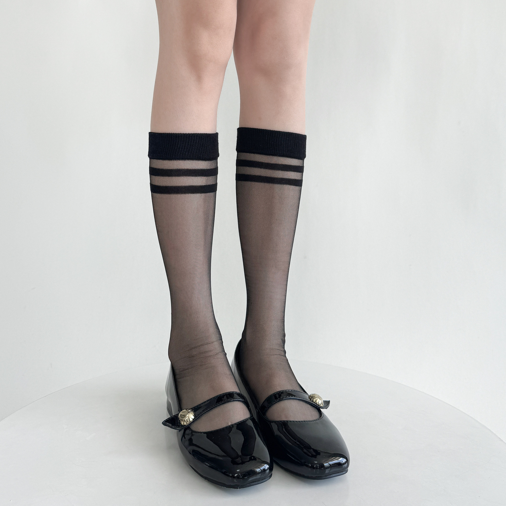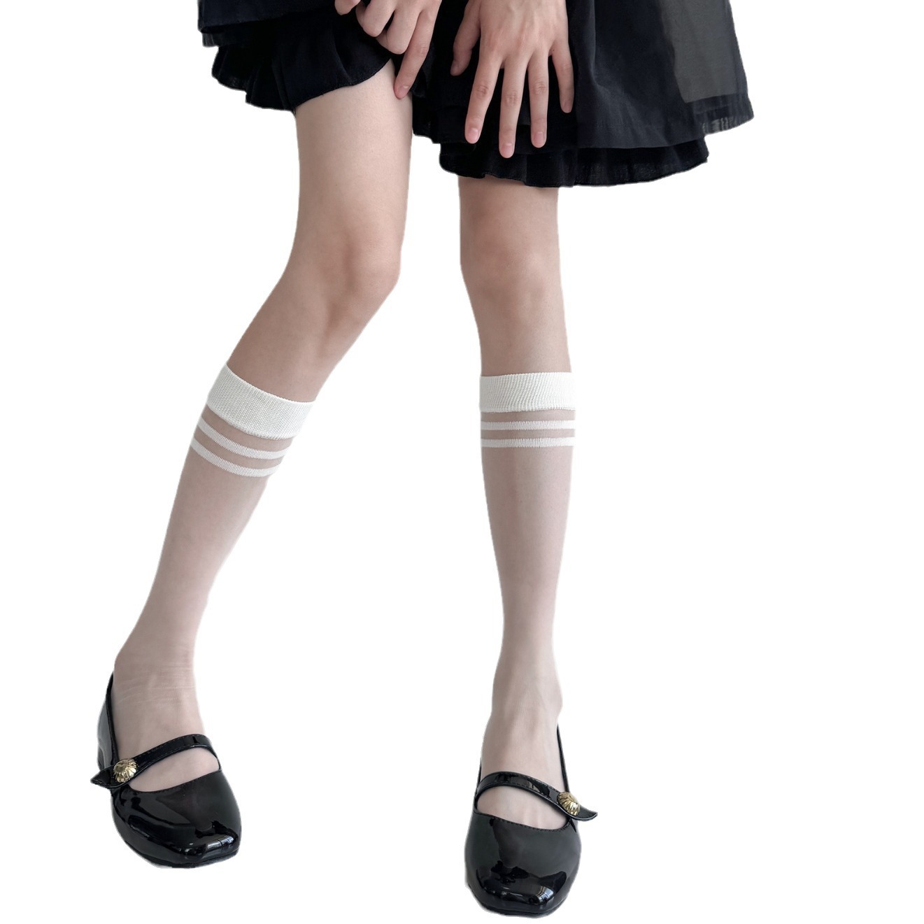 夏季波点卡丝小腿袜超薄透明薄款日系JK甜美辣妹玻璃丝条纹中筒袜