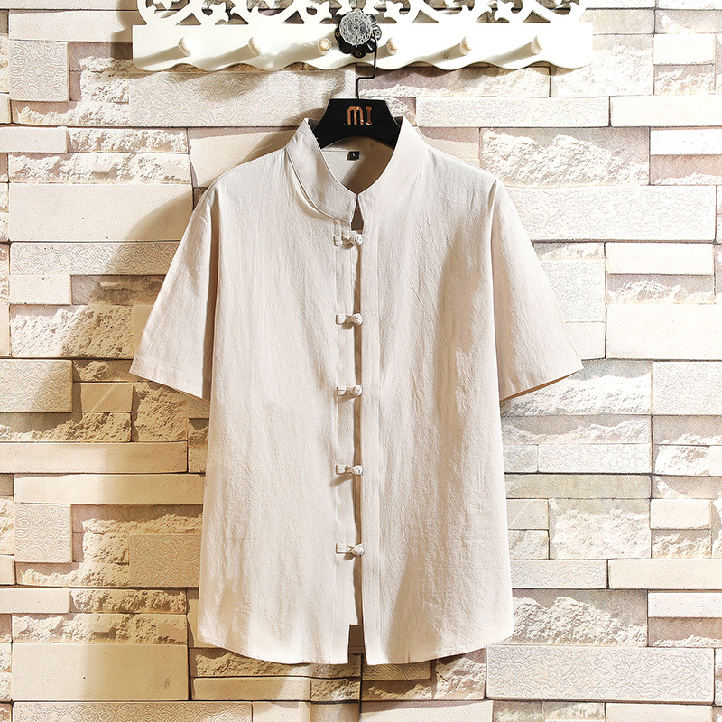 中国风男短袖衬衫男衬衣棉麻盘扣复古寸衣