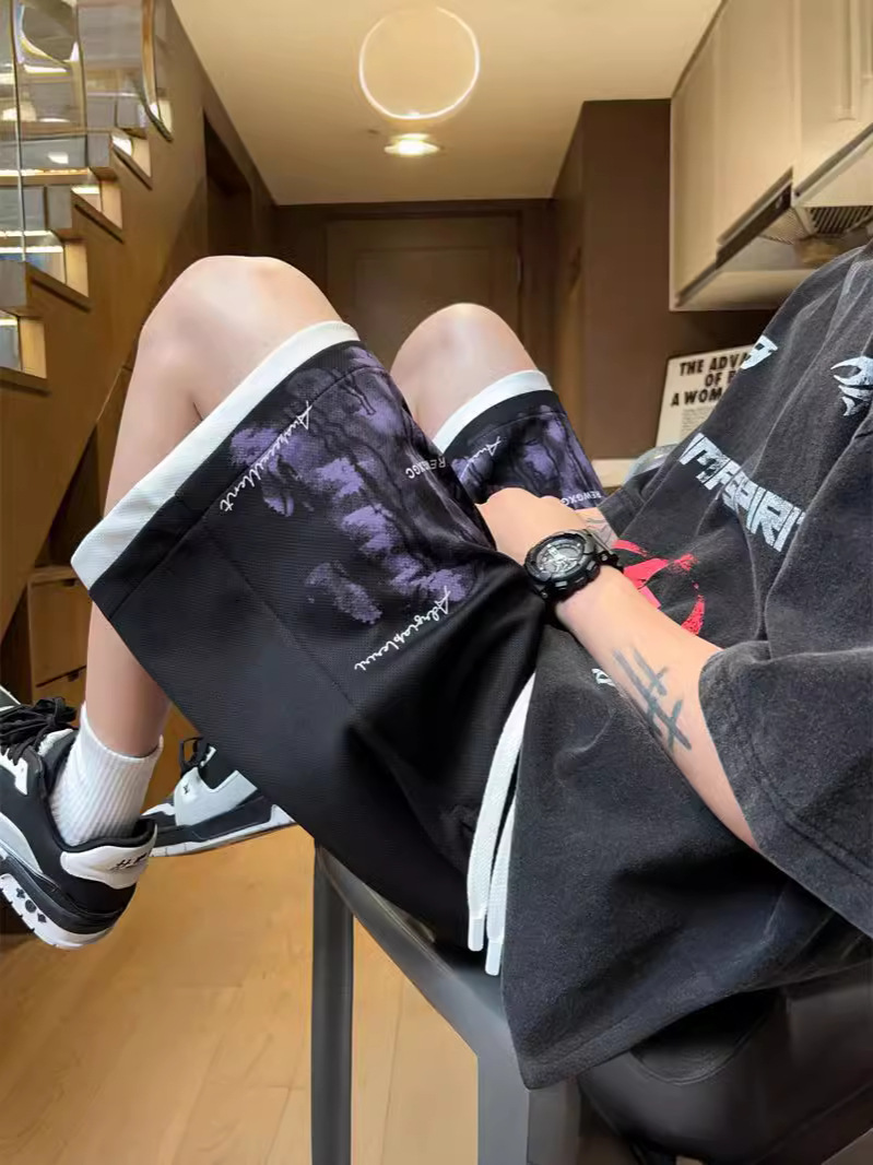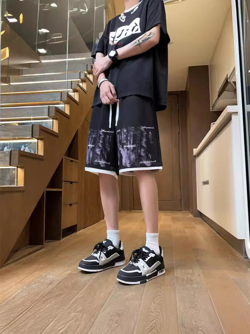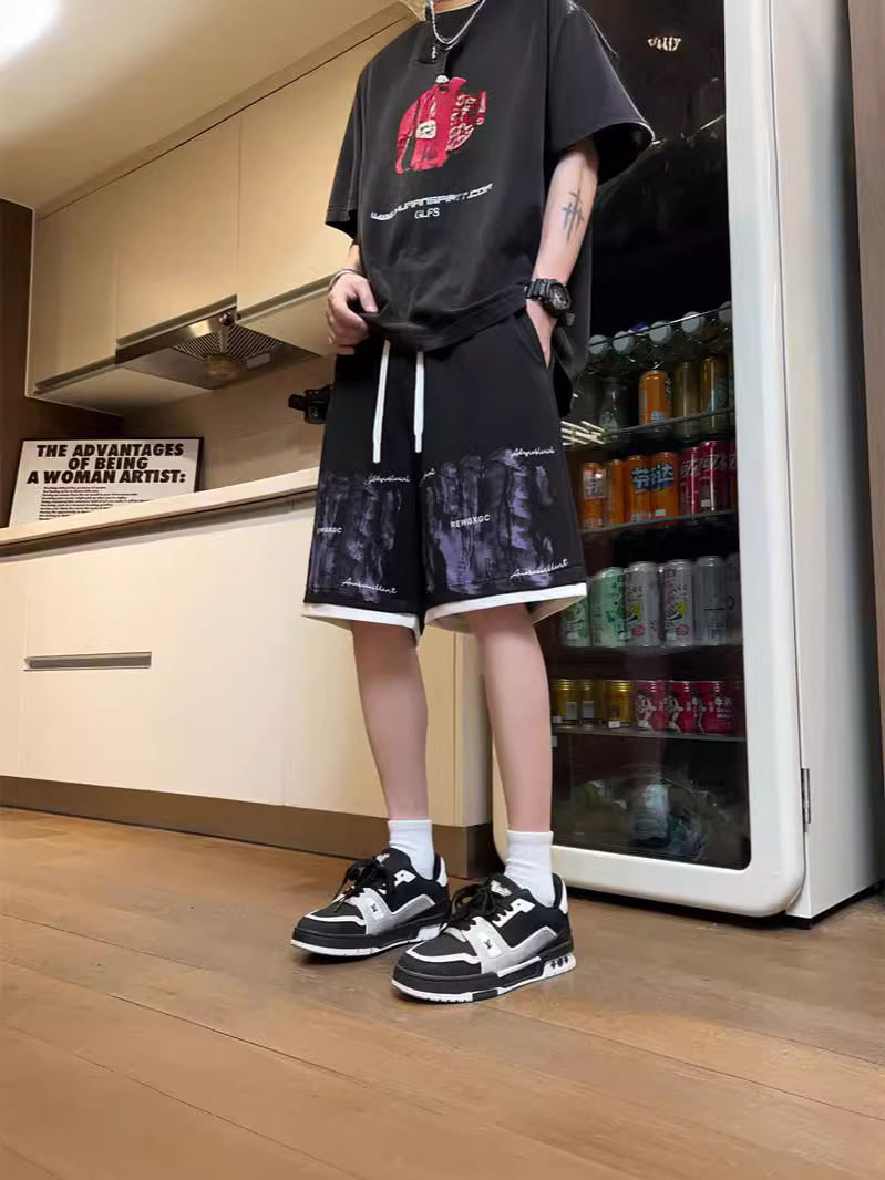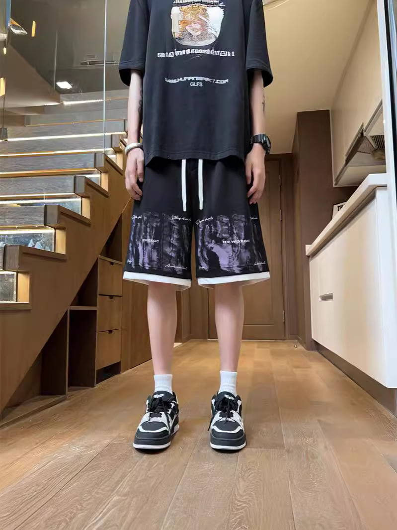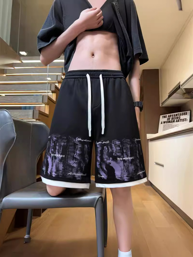 假两件短裤男夏季新款潮牌高街大码篮球运动裤宽松直筒五分裤子男