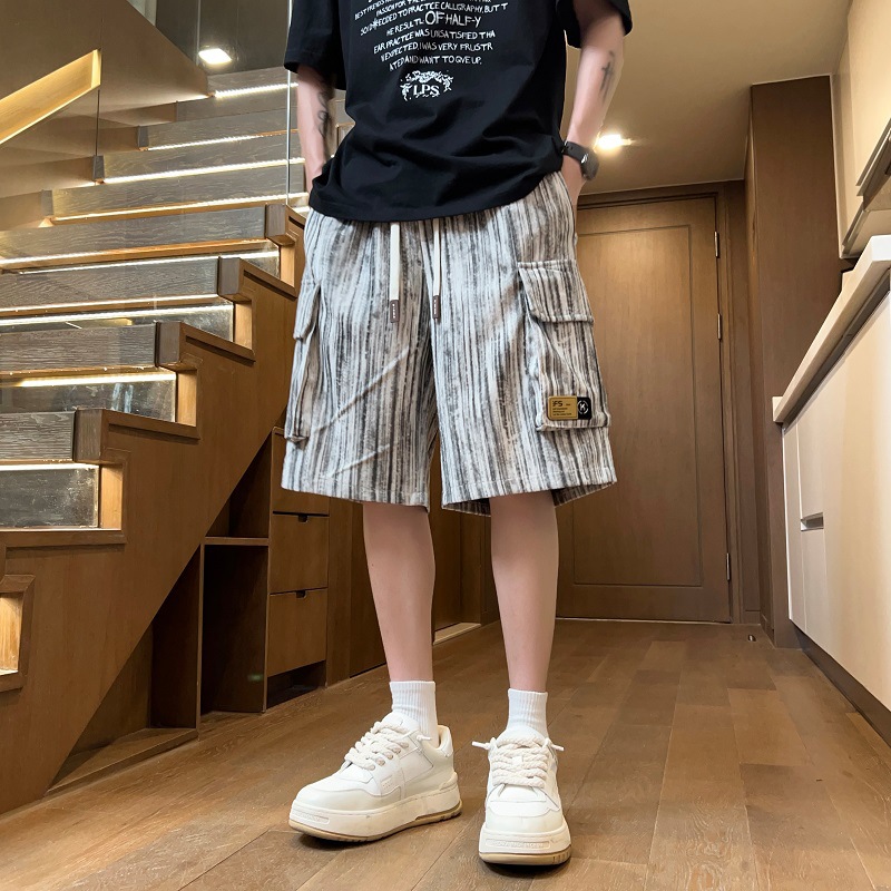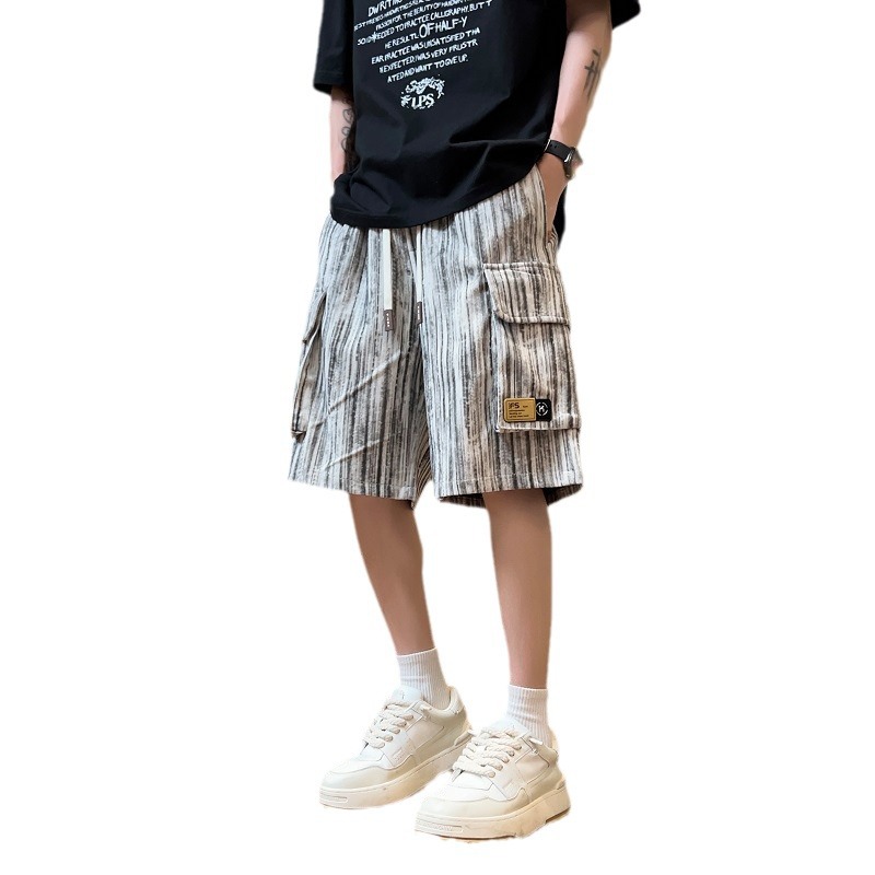 工装短裤男夏季新款迷彩休闲运动百搭薄款条纹五分裤男士中裤