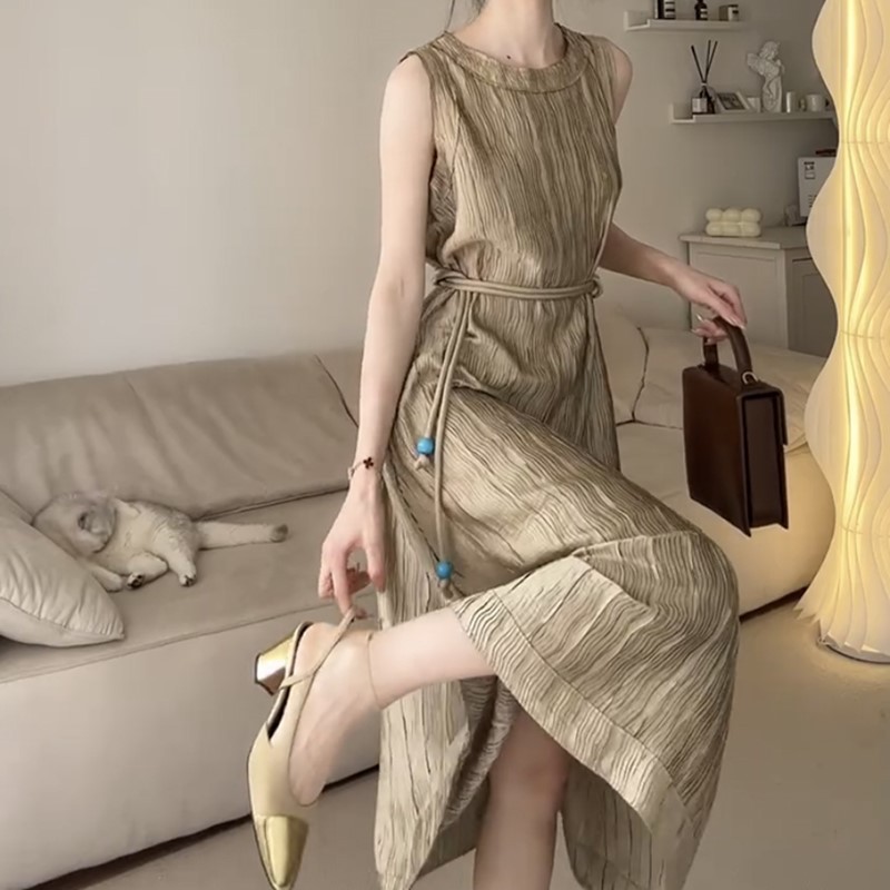 夏季新款法式御姐风女神范无袖连衣裙气质显瘦正式场合长裙子