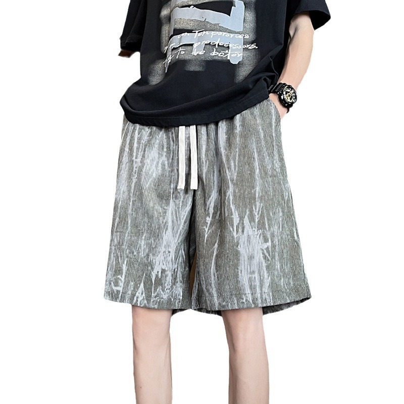 美式高街牛仔短裤男夏季薄款宽松潮牌百搭抽绳裤子男外穿五分裤潮