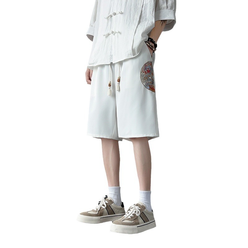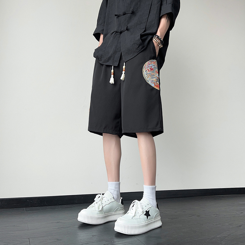 冰丝速干五分裤男夏季薄款刺绣运动短裤子宽松新中式大码中裤