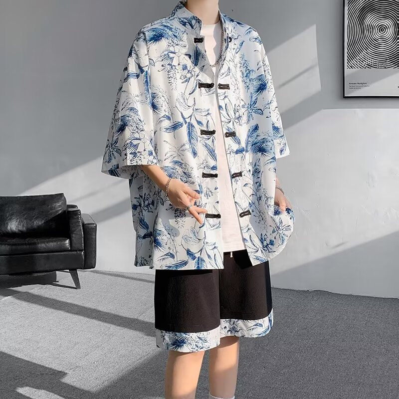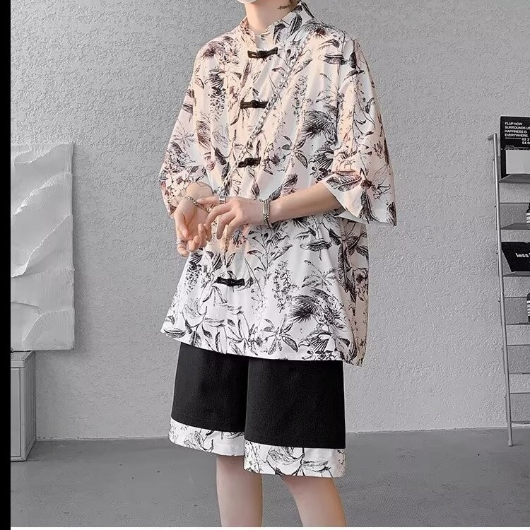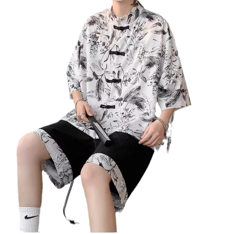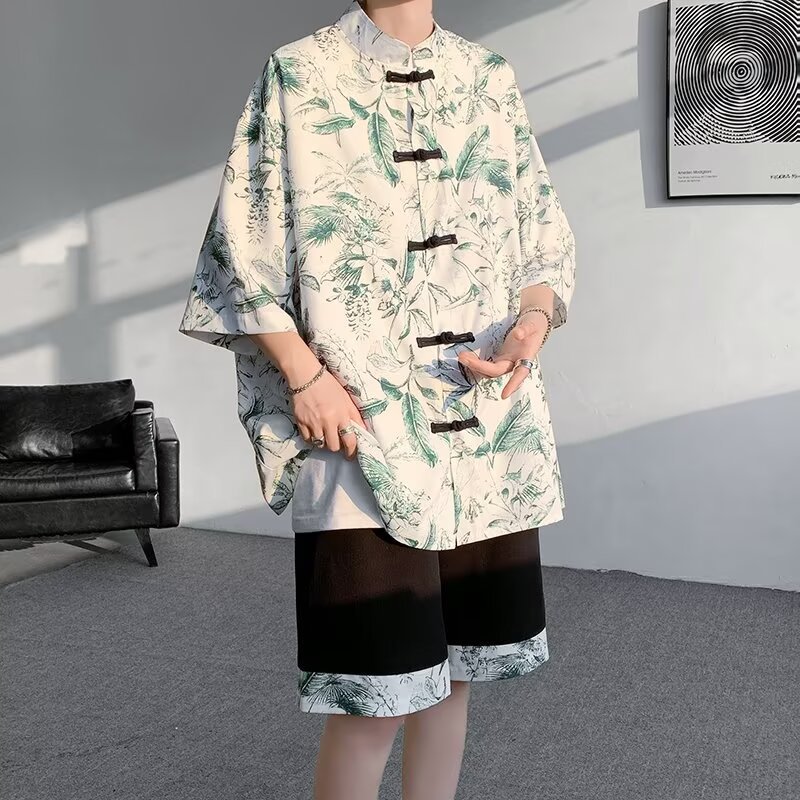 中式国风套装男生夏季海边酷帅穿搭一整套男士大码休闲短袖短裤男