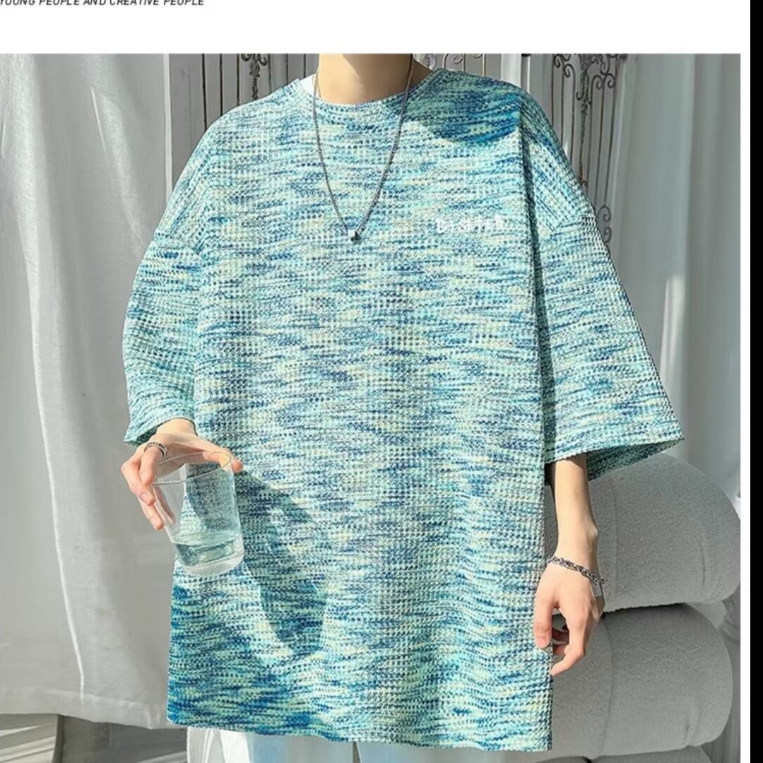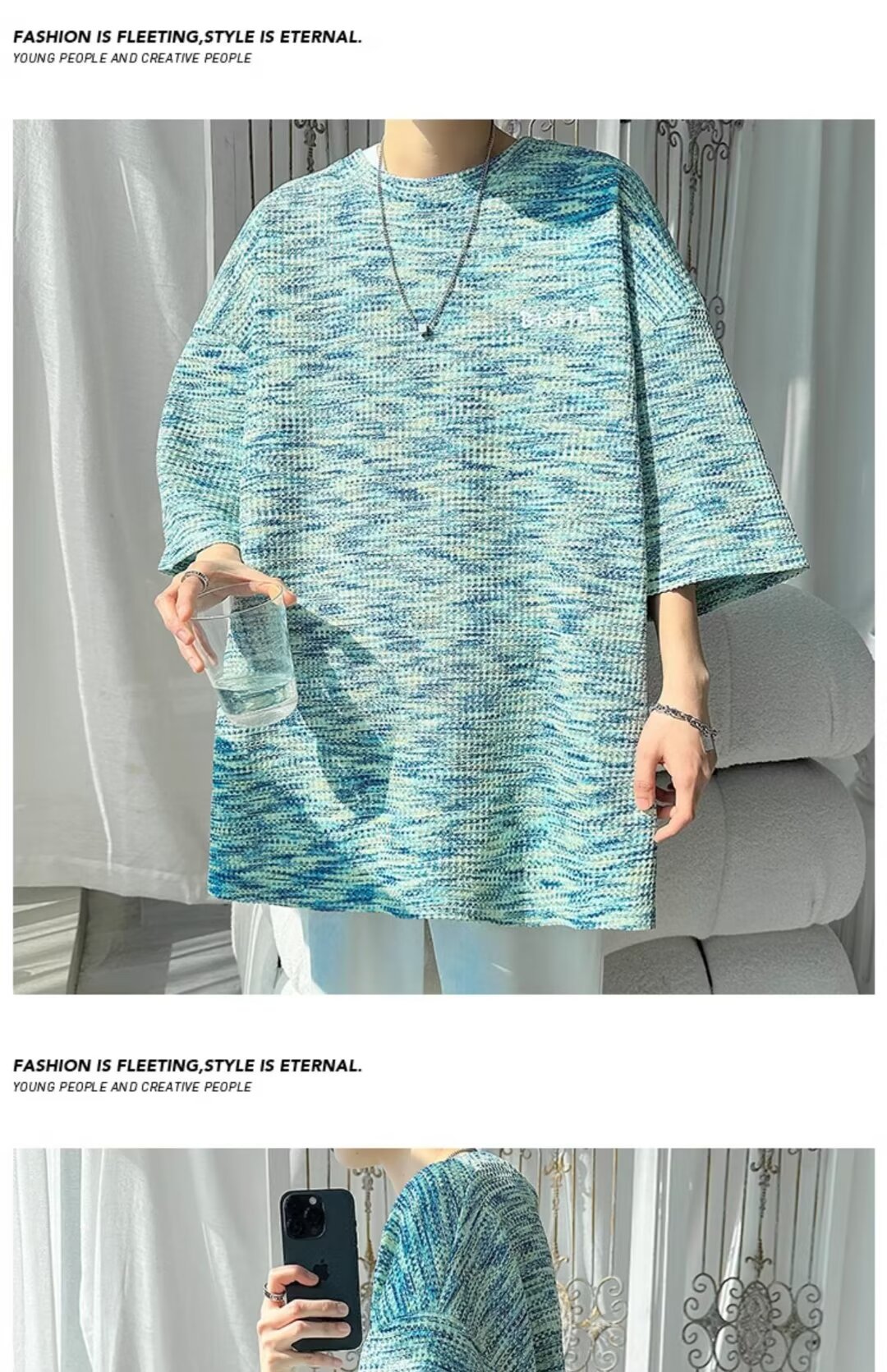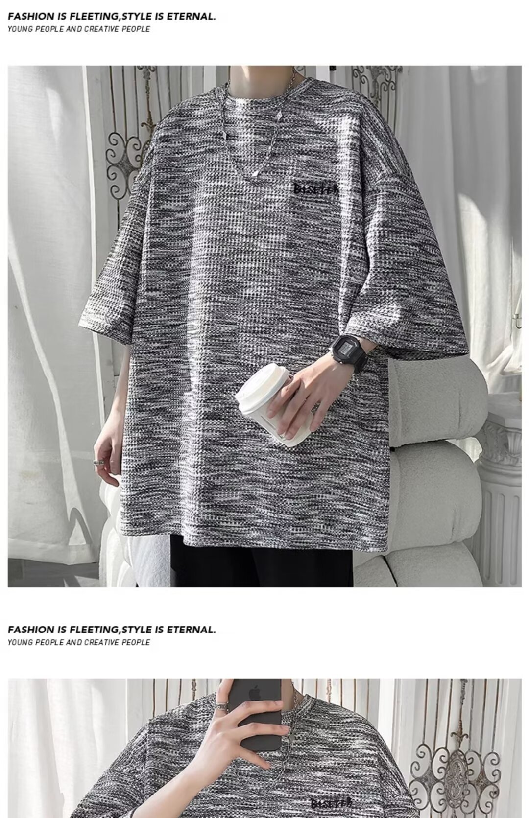 小香风华夫格刺绣T恤男装短袖夏季新款衣服潮牌宽松大码中袖