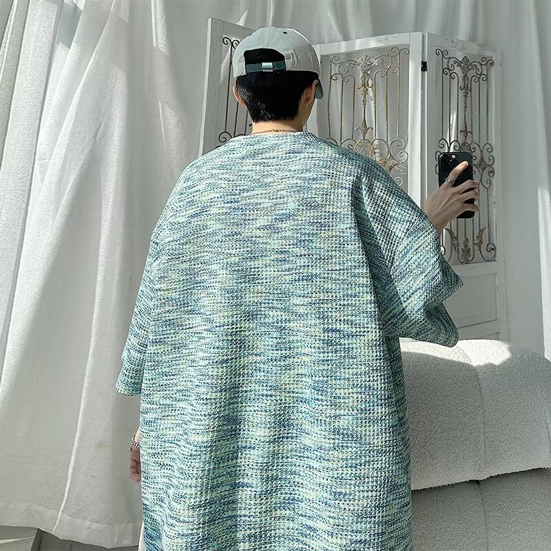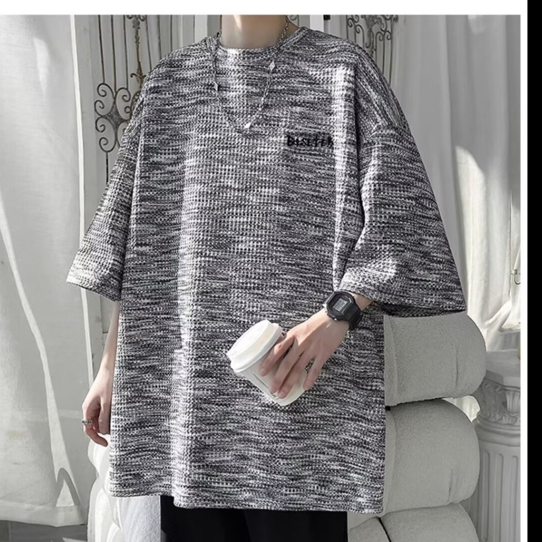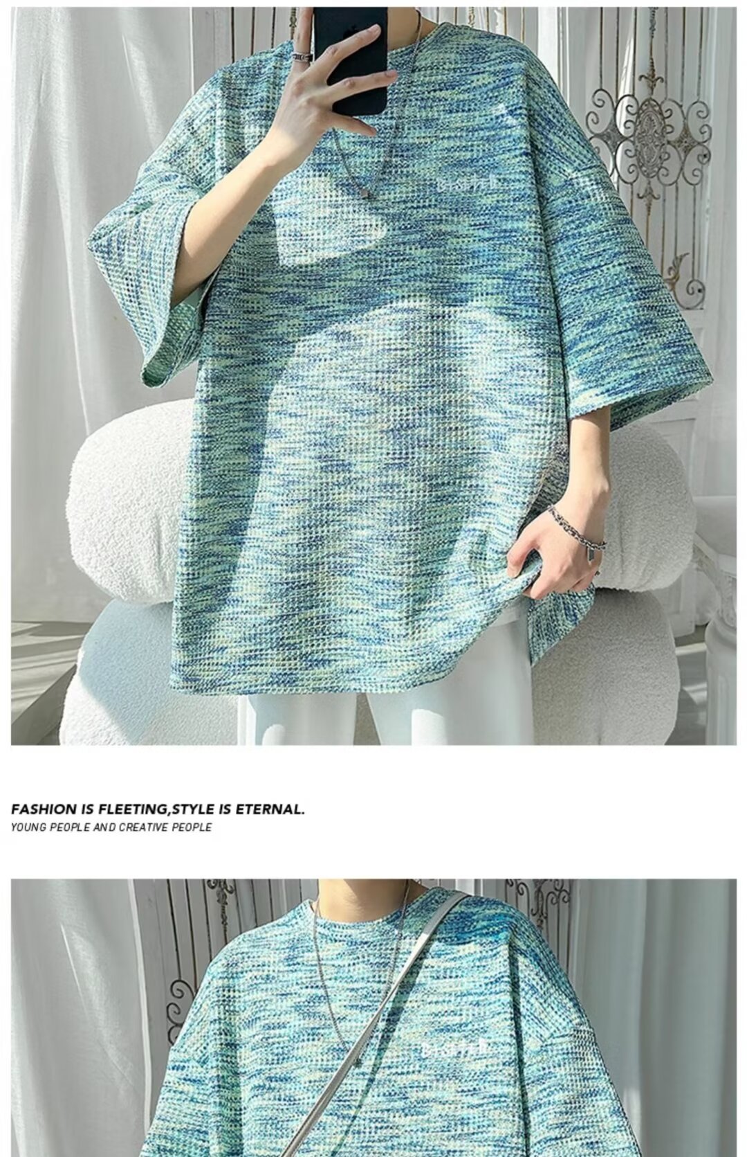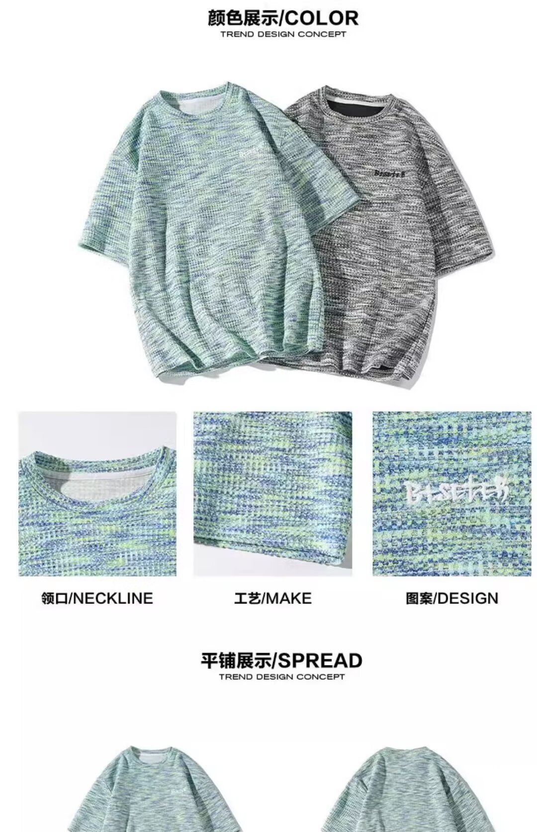 小香风华夫格刺绣T恤男装短袖夏季新款衣服潮牌宽松大码中袖