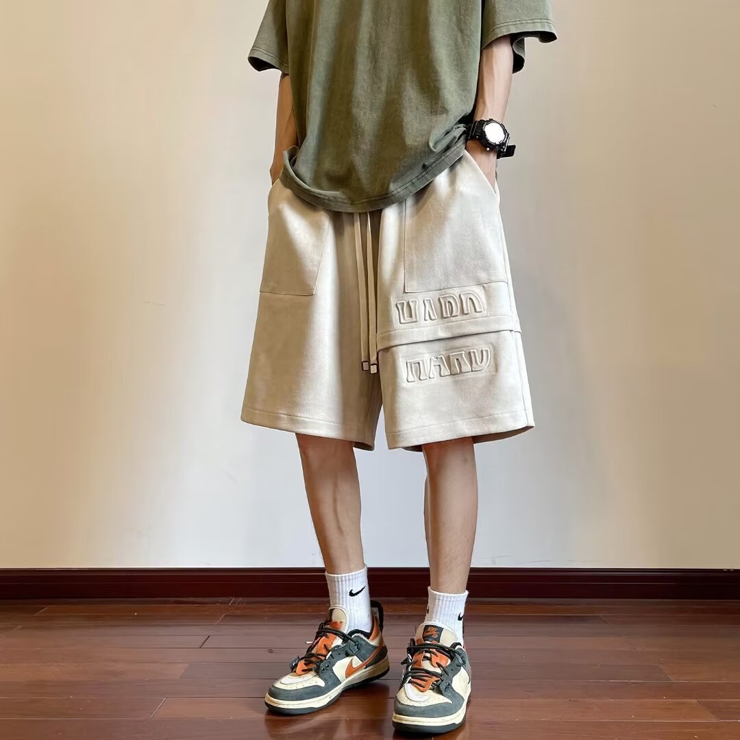 重磅麂皮绒短裤男夏季潮牌宽松大码高街美式拼接运动休闲五分中裤