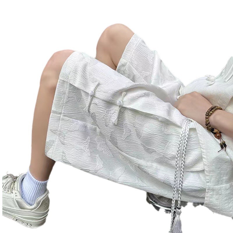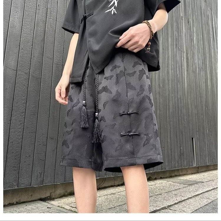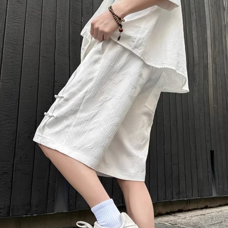 新中式男装短裤中国风冰丝白色设计感高级夏薄款居家睡裤五分裤子