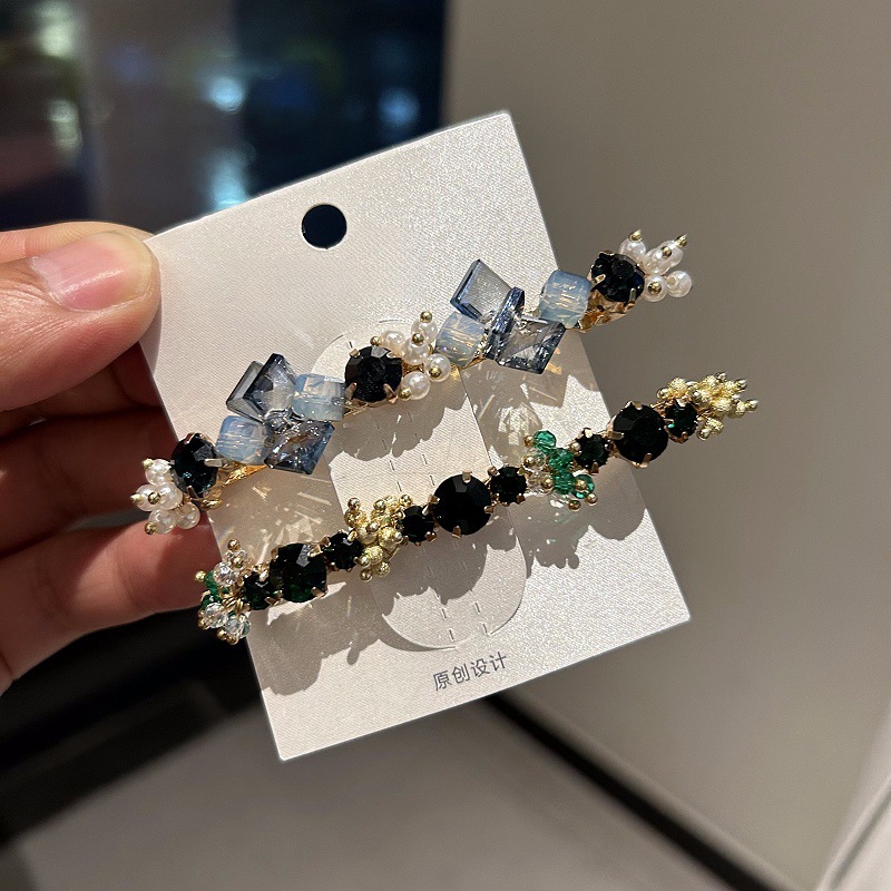 韩国气质简约百搭发夹高档亮钻水晶边夹手工编织鸭嘴夹刘海夹