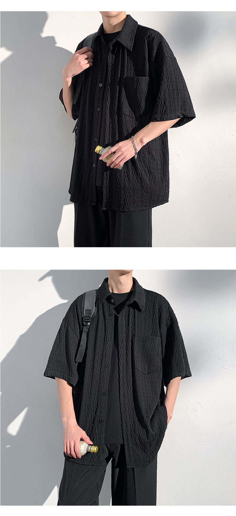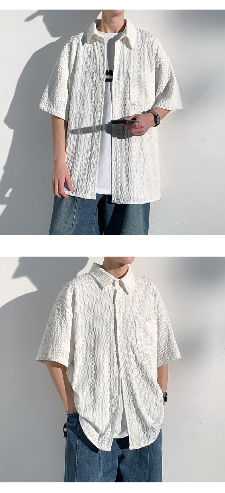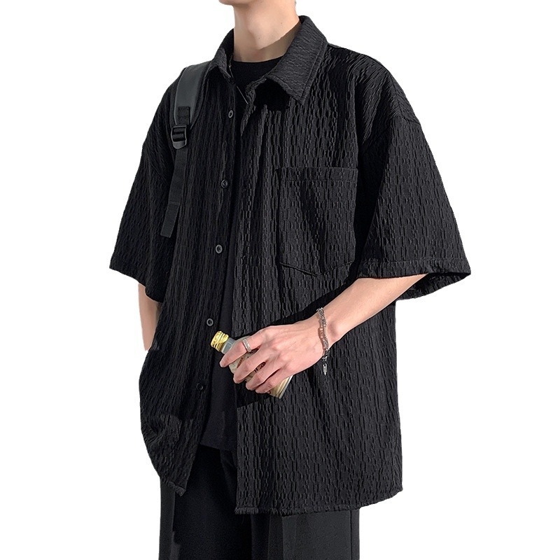 冰丝纯色衬衫男夏季新款肌理感宽松垂感翻领半袖上衣港风休闲夏装
