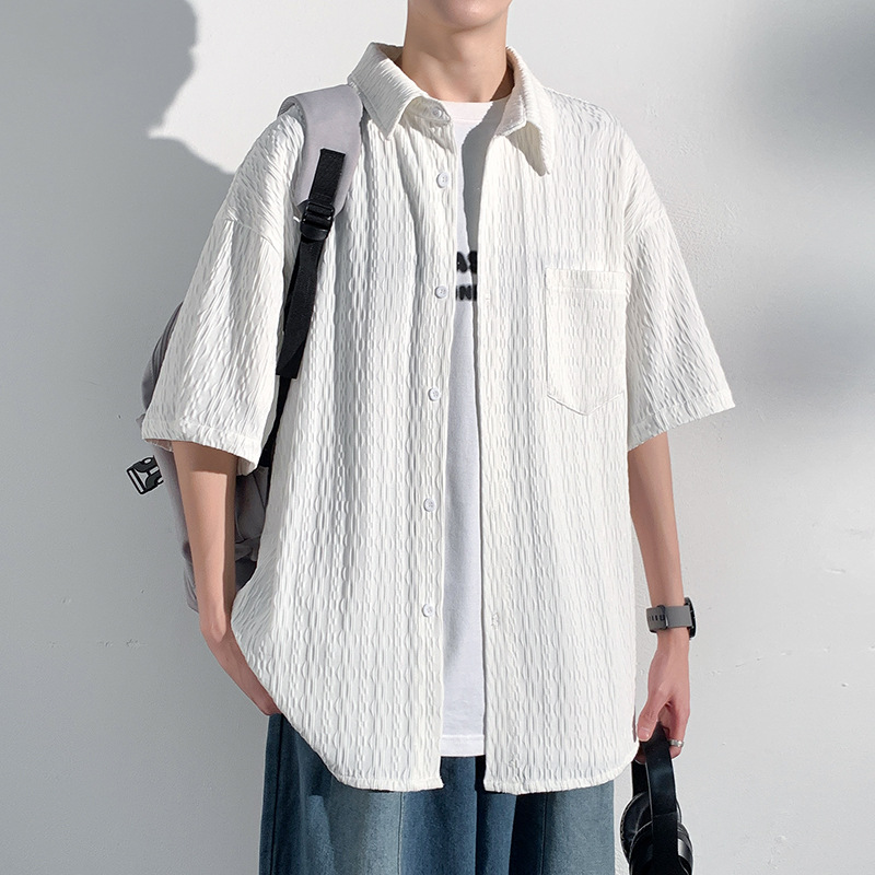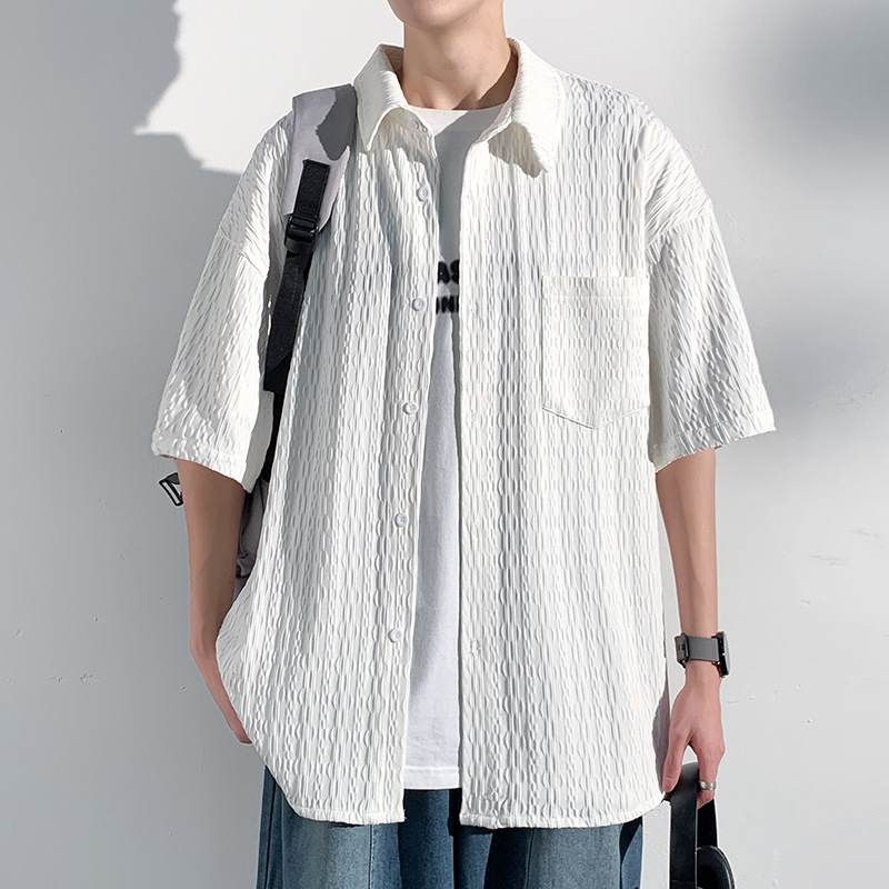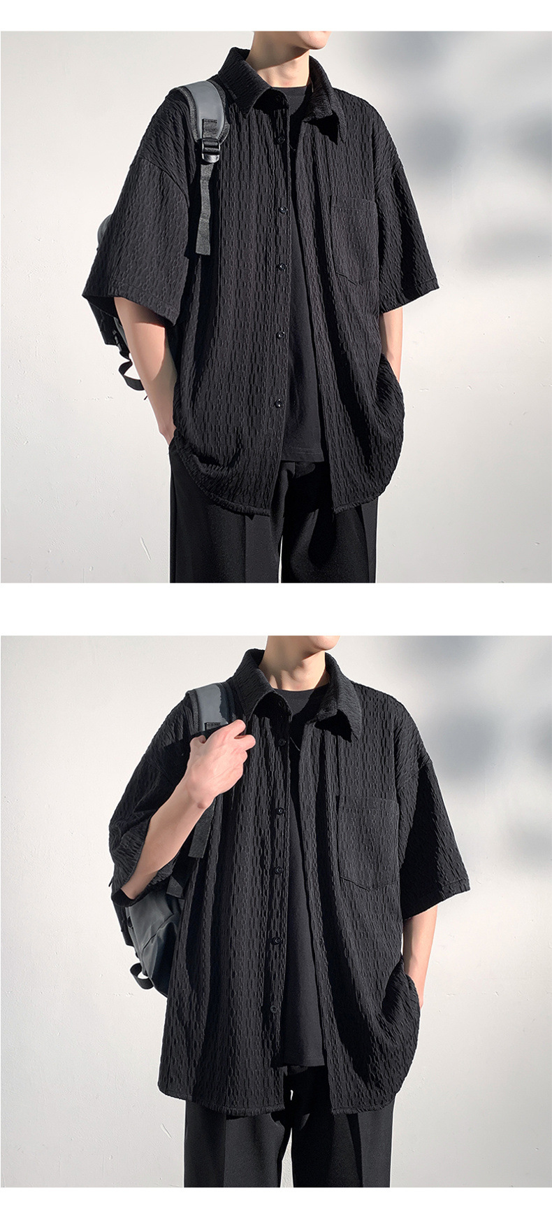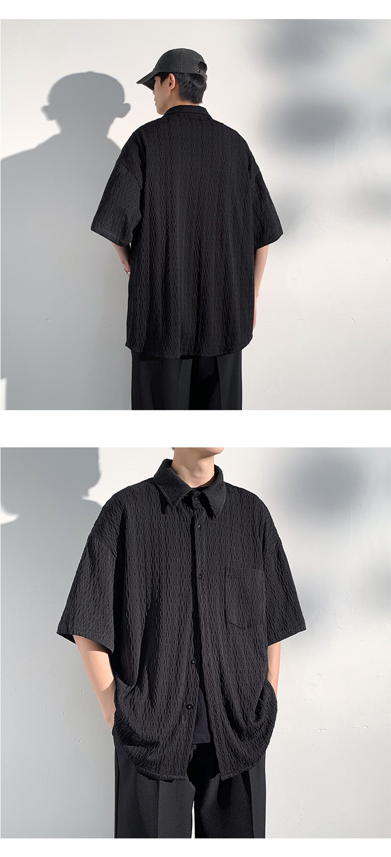 冰丝纯色衬衫男夏季新款肌理感宽松垂感翻领半袖上衣港风休闲夏装