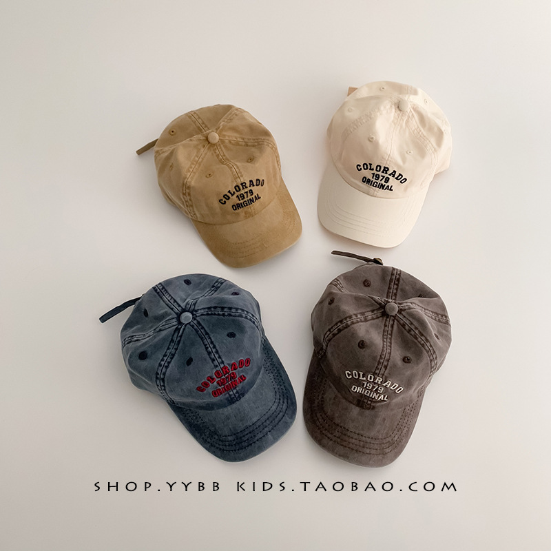 儿童帽子春秋薄款水洗做旧复古鸭舌帽男女宝宝遮阳防晒韩版棒球帽