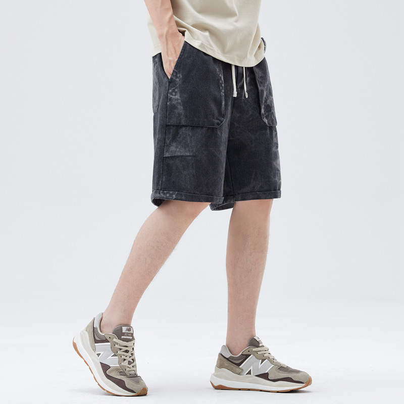 新款五分裤男夏季休闲裤美式街头潮牌短裤宽松做旧港风学生裤子