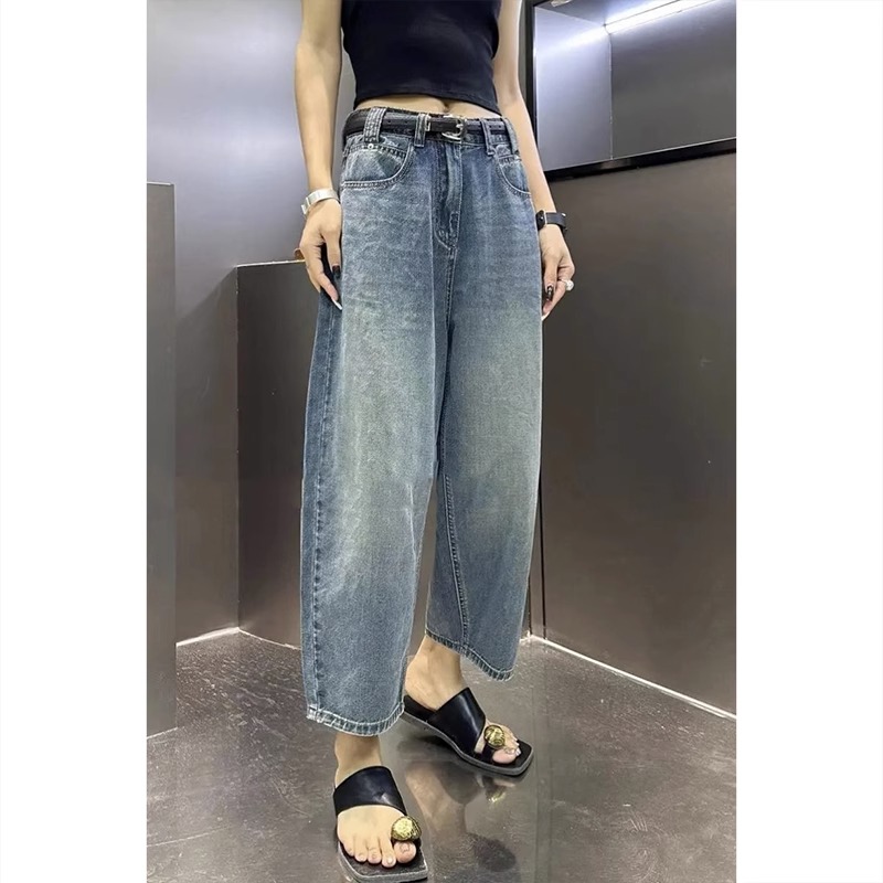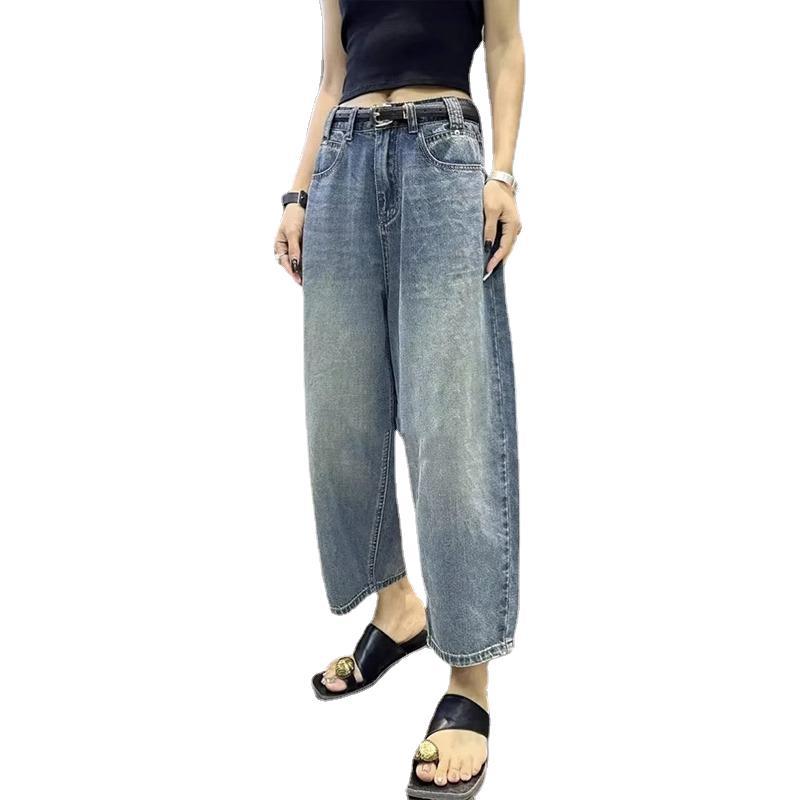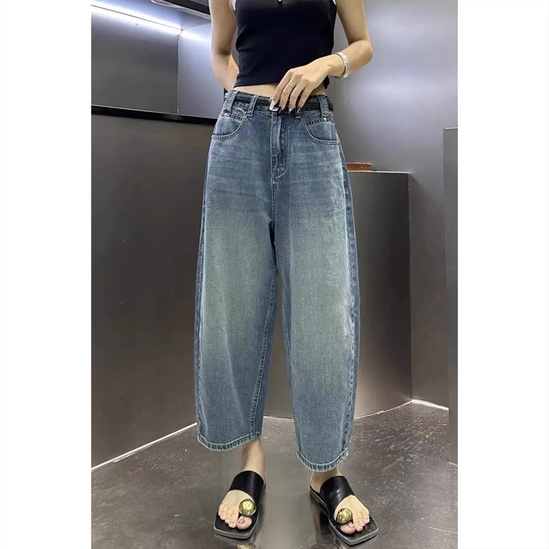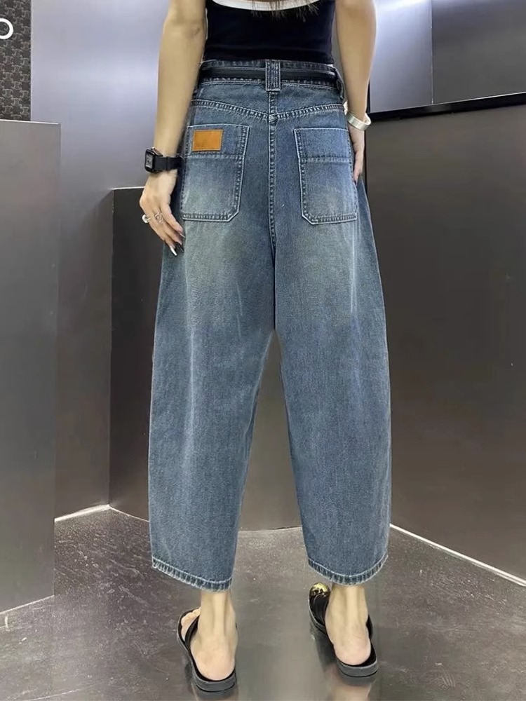 牛仔老爹裤女春夏款大码高腰梨形身材宽松遮胯显瘦哈伦香蕉裤