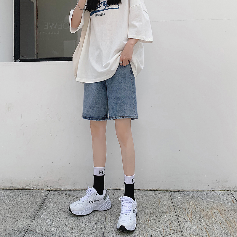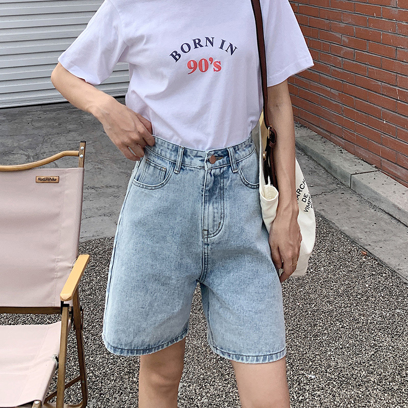 五分牛仔短裤女夏季薄款新款高腰显瘦5分宽松阔腿中裤甜酷风