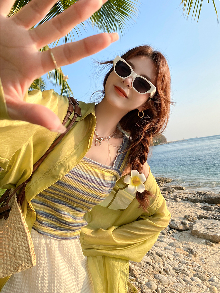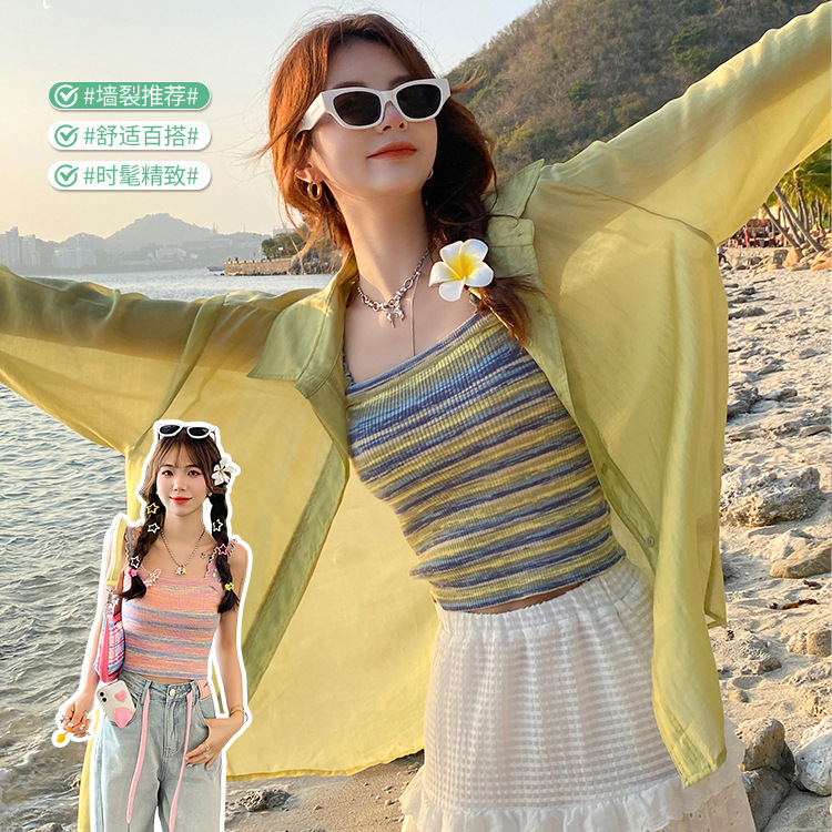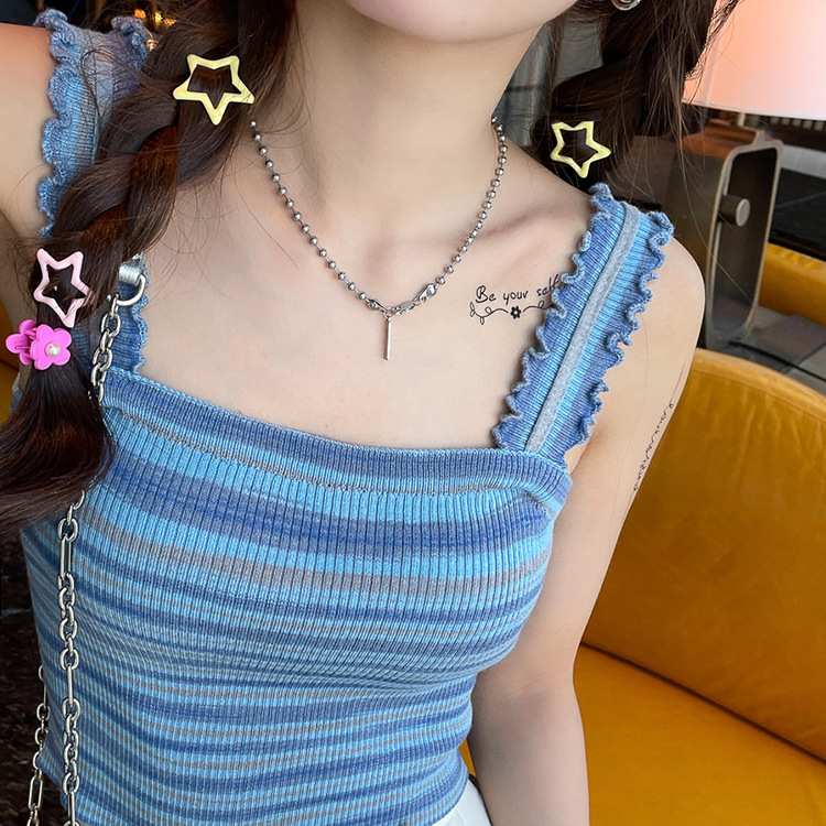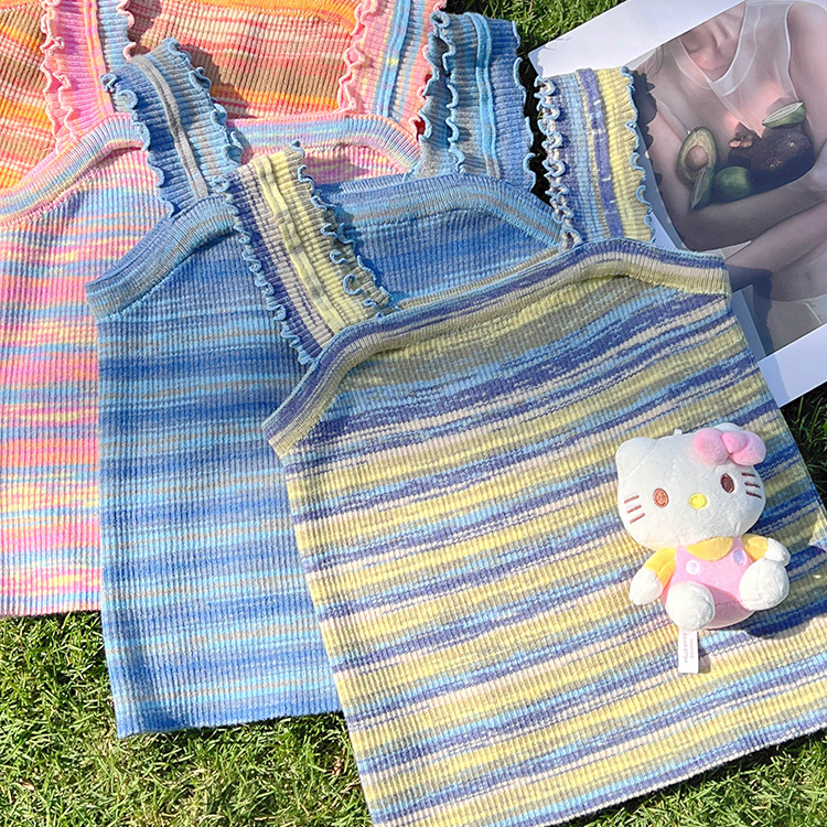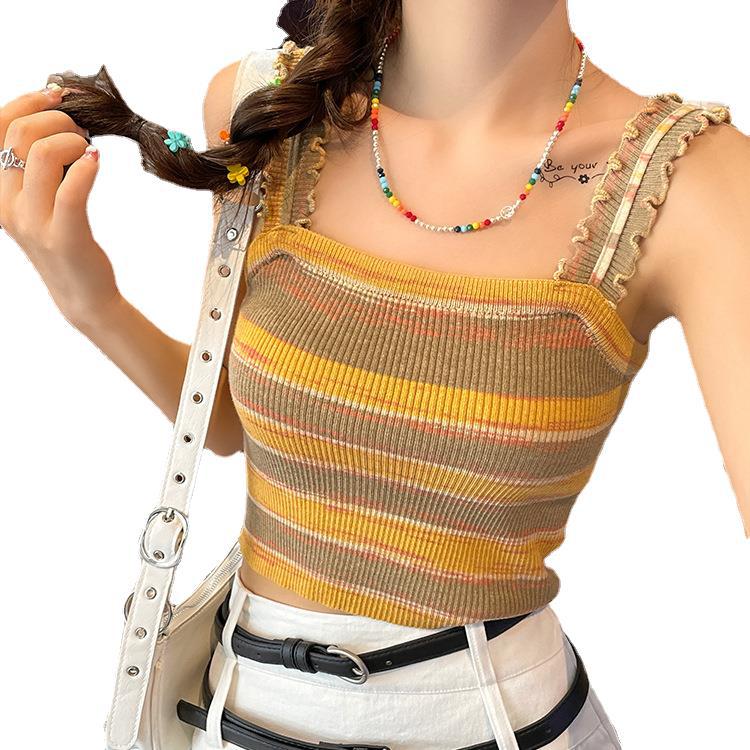 木耳边吊带背心女外穿夏新款设计感小众撞色针织条纹内搭打底上衣
