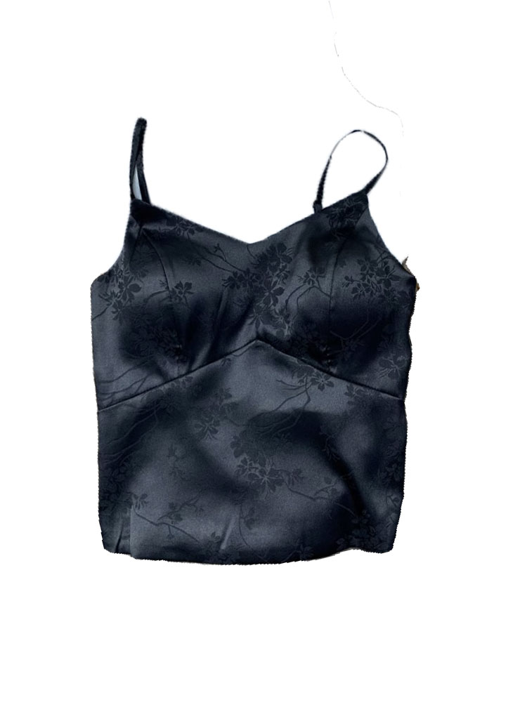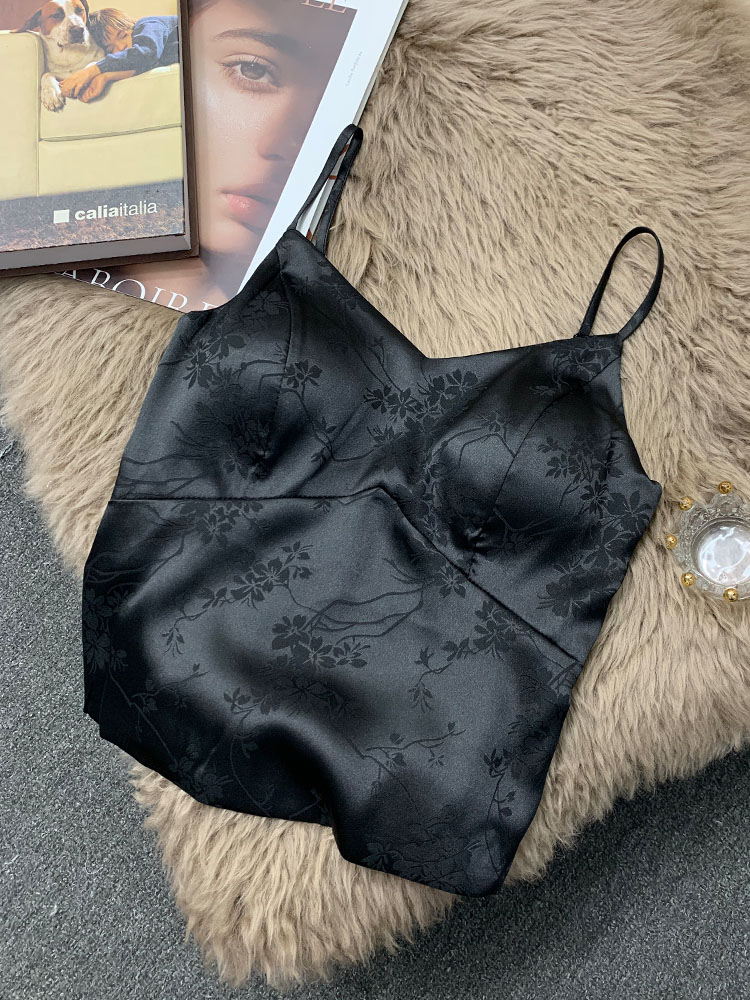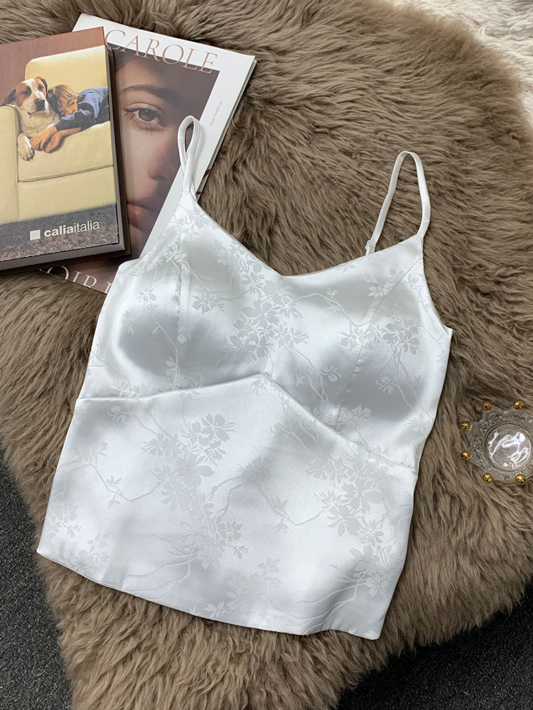 新中式醋酸缎面吊带背心女外穿小西装内搭V领性感带胸垫打底上衣