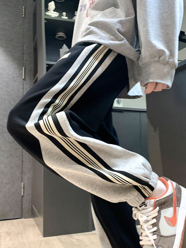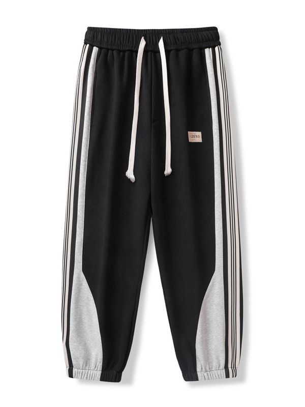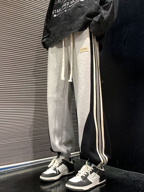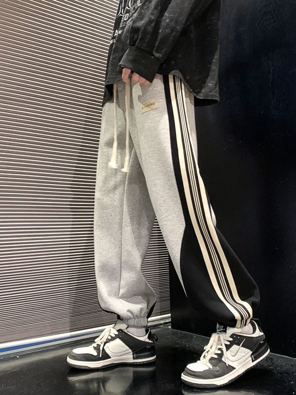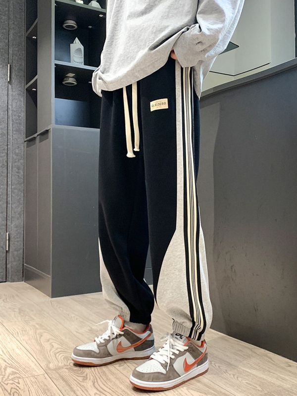 撞色拼接条纹卫裤男宽松夏季薄束脚运动裤男士高街美式vibe裤子男