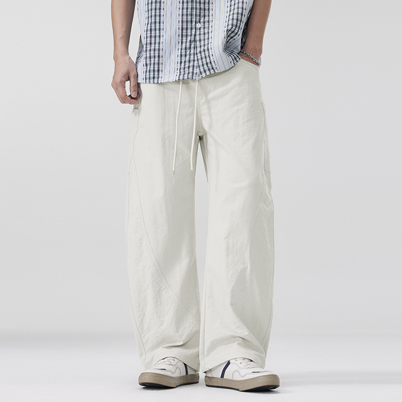 春夏季美式高街工装弯刀裤潮流简约直筒休闲裤男松紧腰潮牌阔腿裤