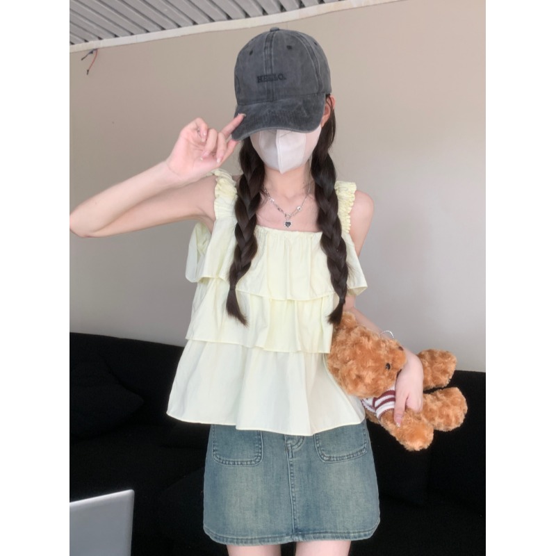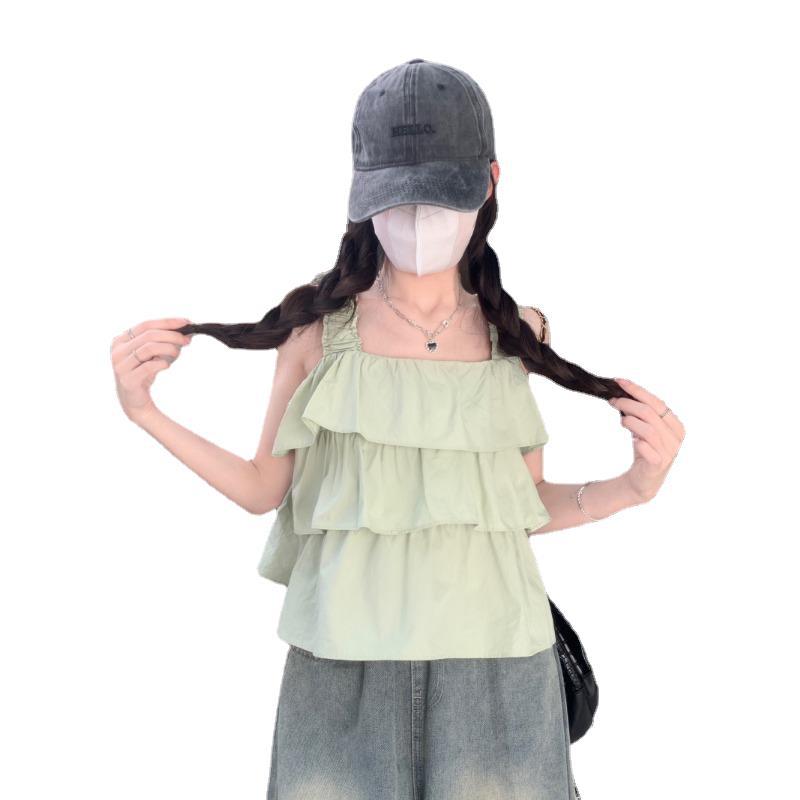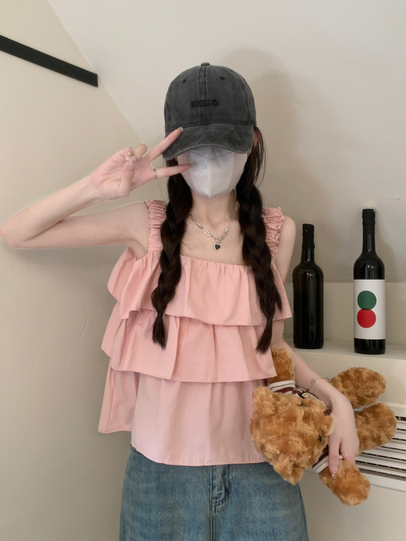 粉色遮副乳吊带背心女夏多巴胺亮色系海边外穿泰式蛋糕娃娃衫上衣