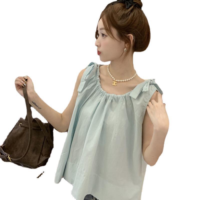 蓝色泰式小吊带背心女夏无袖外穿坎肩遮副乳娃娃衫甜美多巴胺上衣