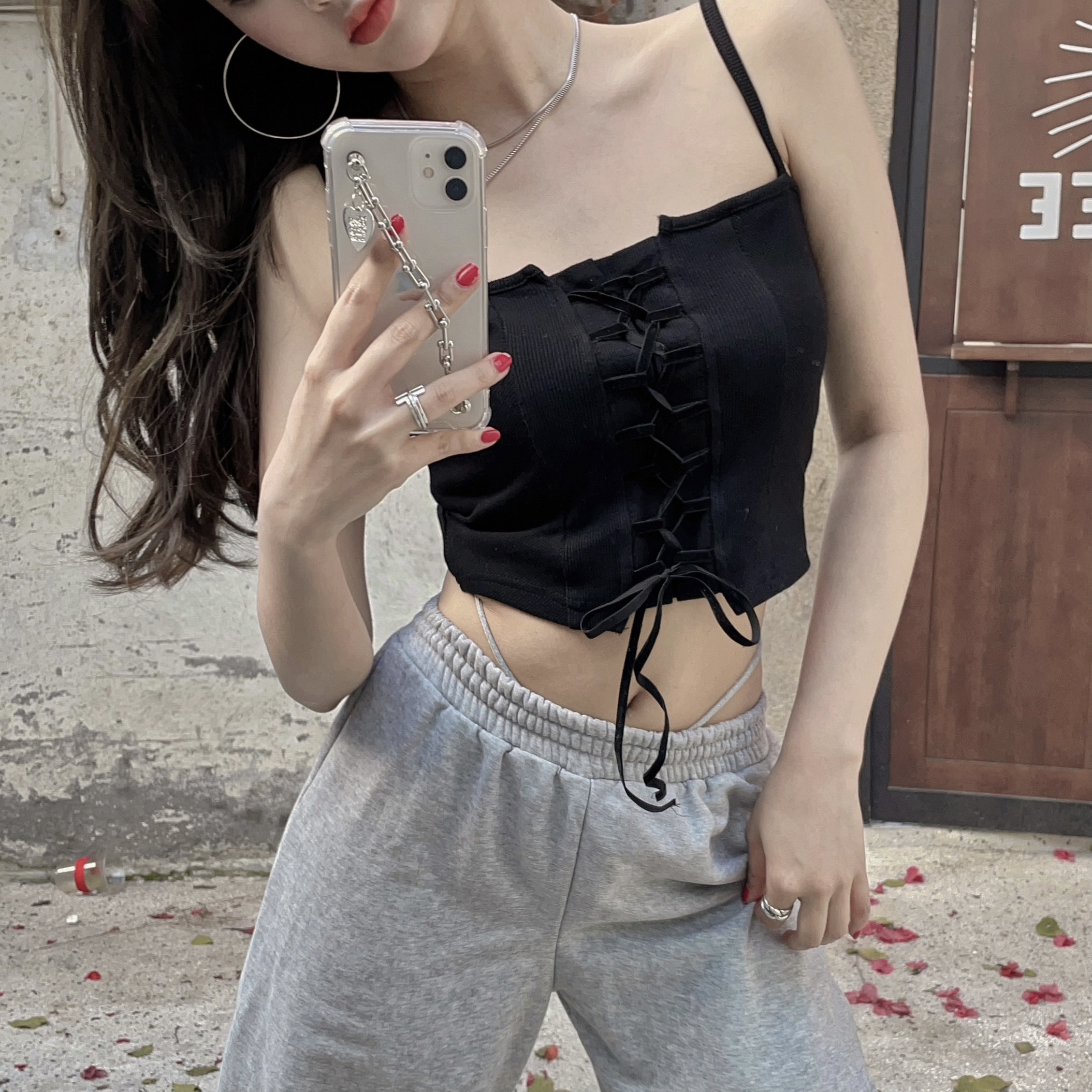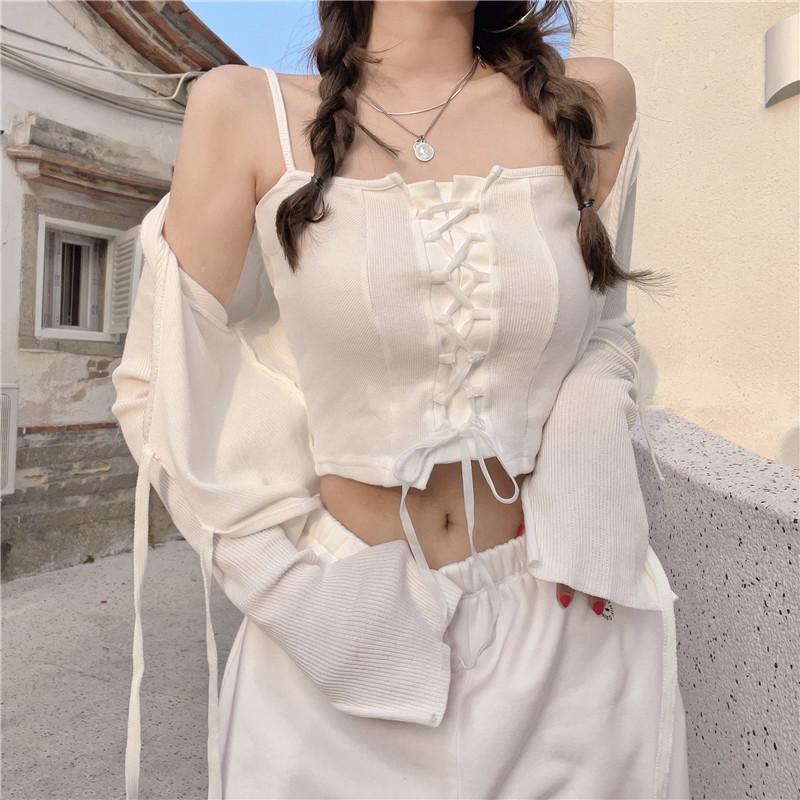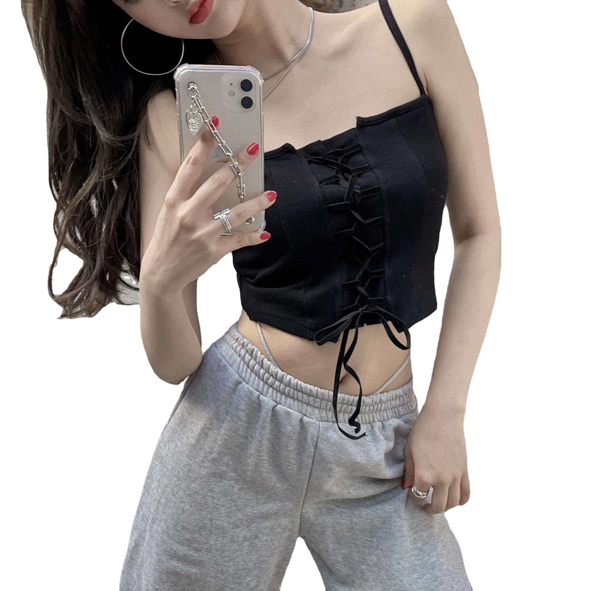 小吊带背心女内搭ins辣妹法式粉色绑带时尚洋气时髦外穿抹胸上衣