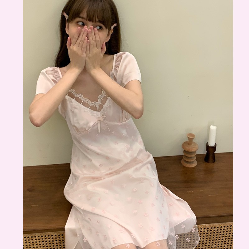 冰丝睡衣女夏季少女纯欲睡裙长款日系家居服套装粉嫩性感纯欲睡衣