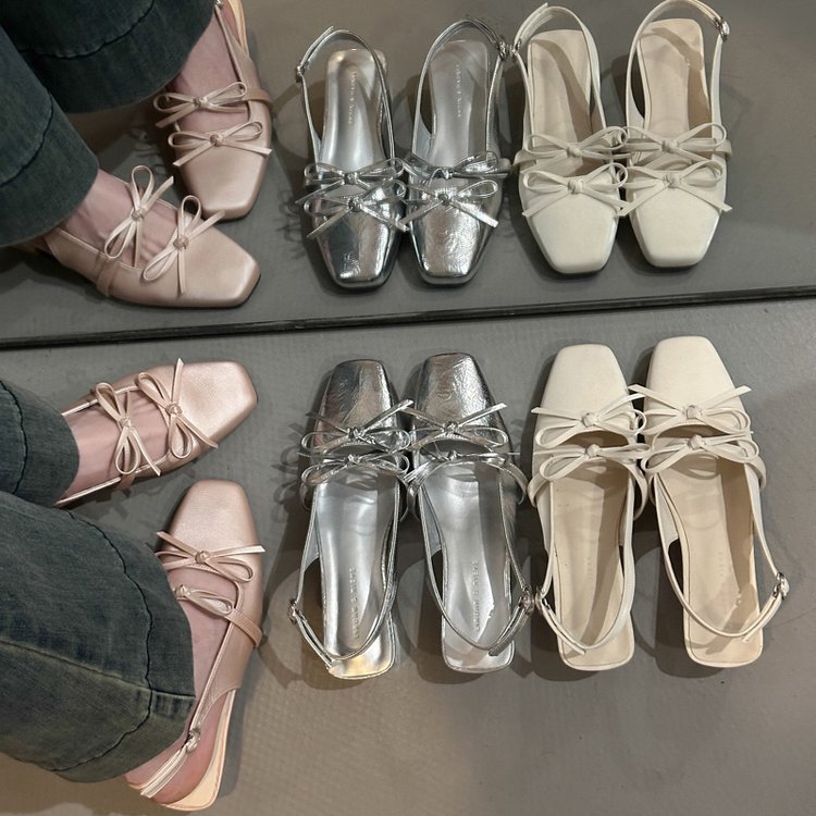 法式晚晚风蝴蝶结粉色包头后绊带凉鞋女新款夏季方头浅口粗跟单鞋