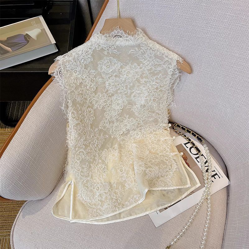 新中式国风盘扣无袖背心女夏季设计感气质改良旗袍蕾丝短款上衣夏