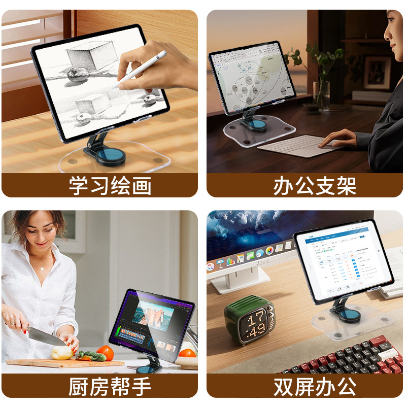 手机支架桌面可爱落地超薄360旋转可折叠便携亚克力透明平板支架