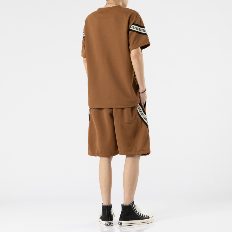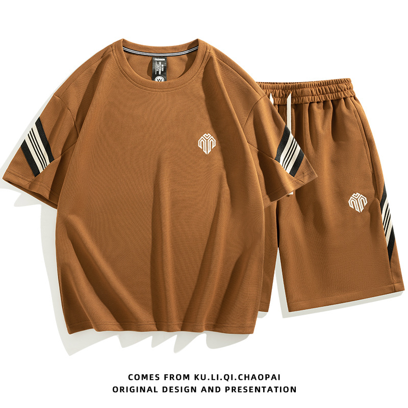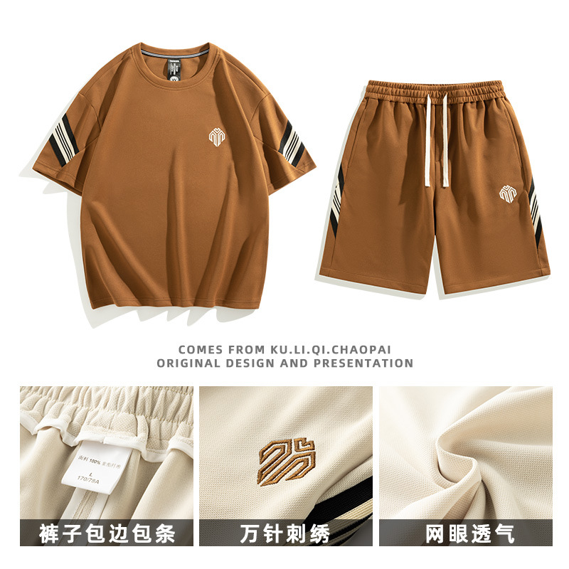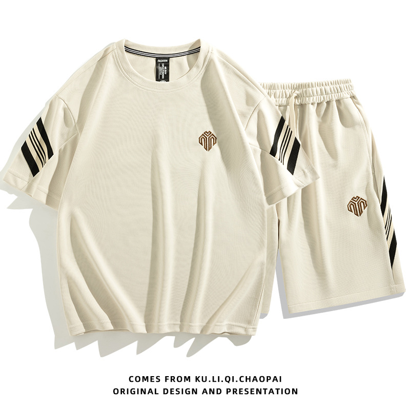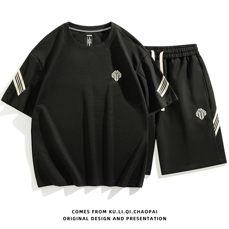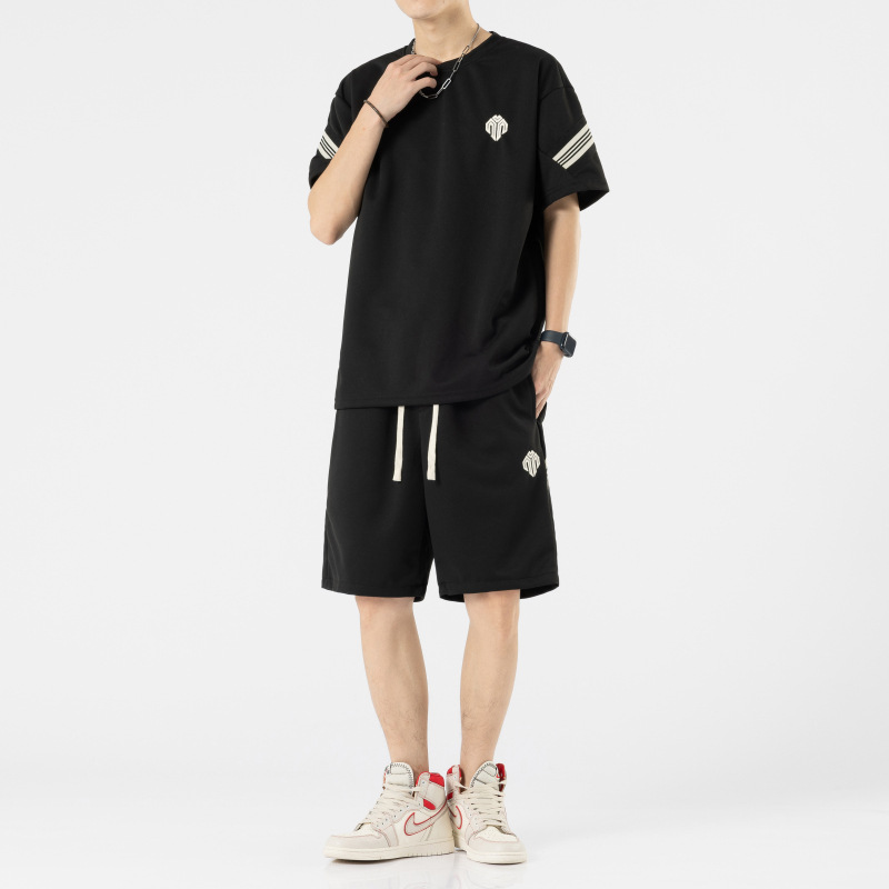 短裤套装男夏天薄款跑步休闲圆领短款两件套短袖五分裤大码套装