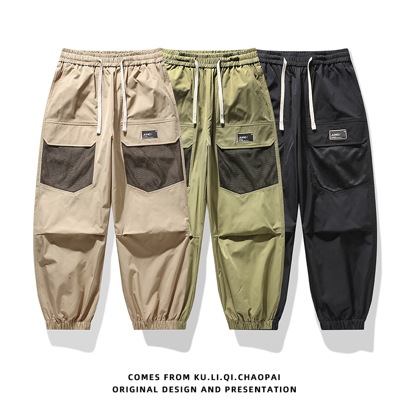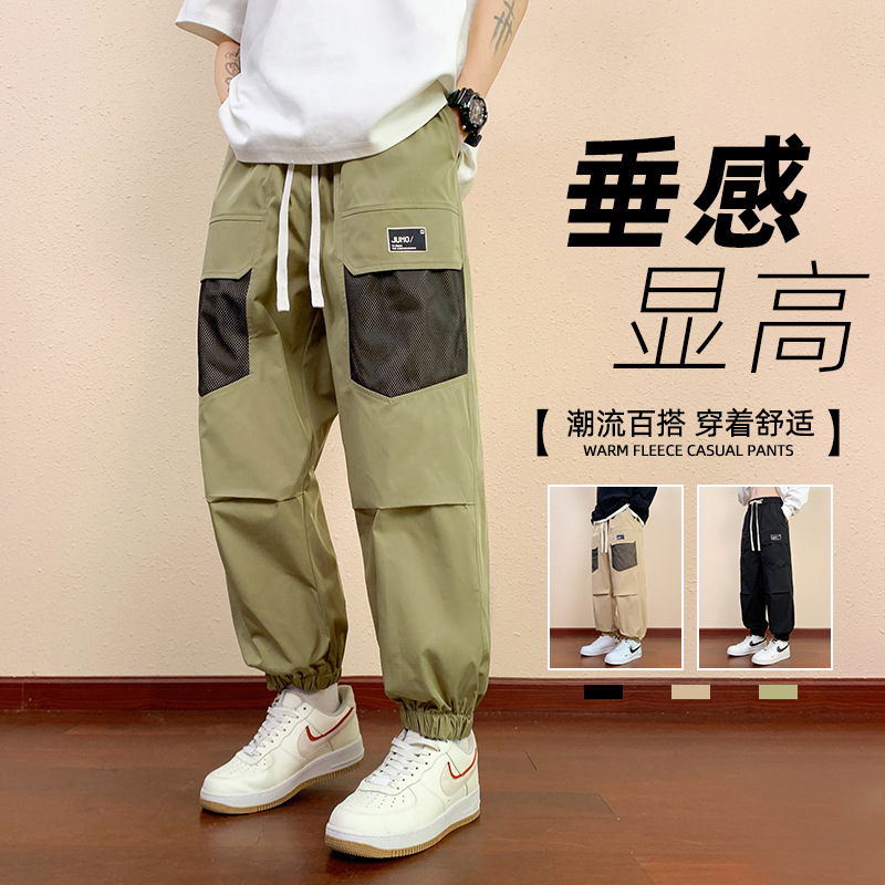 男款春夏薄款水洗工装裤宽松美式潮牌束脚长裤休闲多口袋垂感裤子