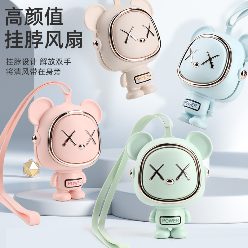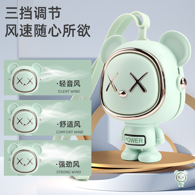 太空熊挂脖风扇USB充电式懒人挂脖小风扇无叶便携式迷你小风扇