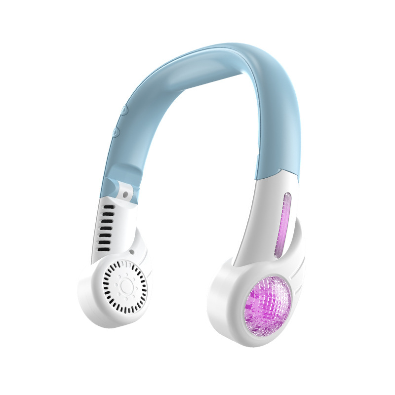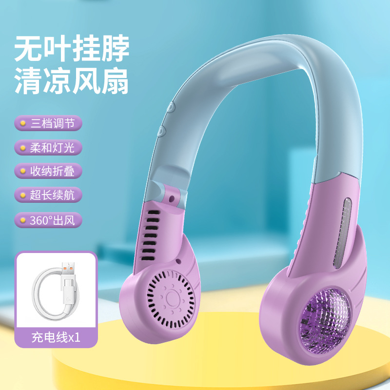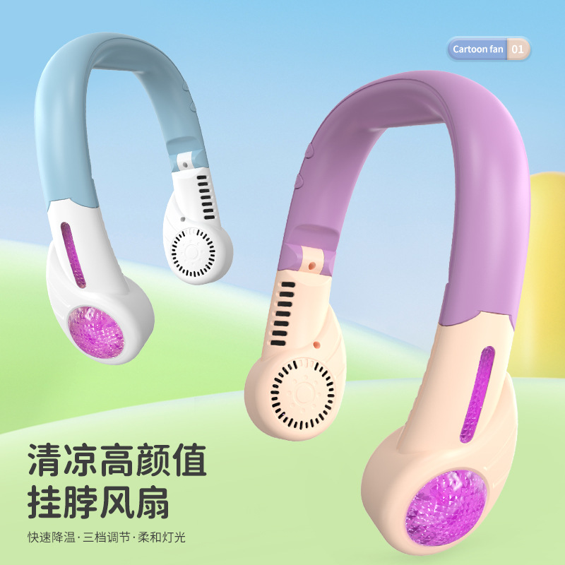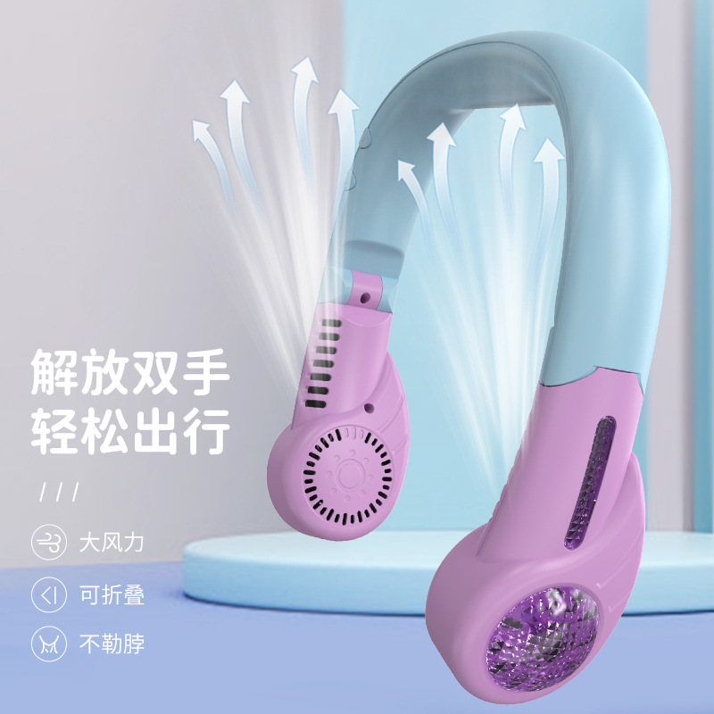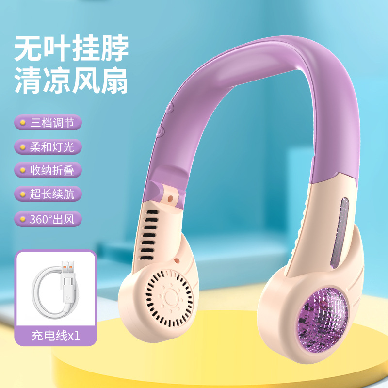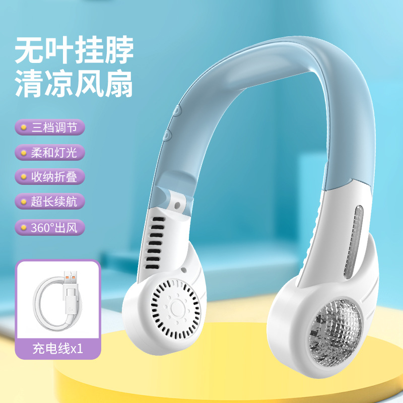 折叠便携式挂脖小风扇USB充电式发光小电风扇三档调速挂脖小风扇