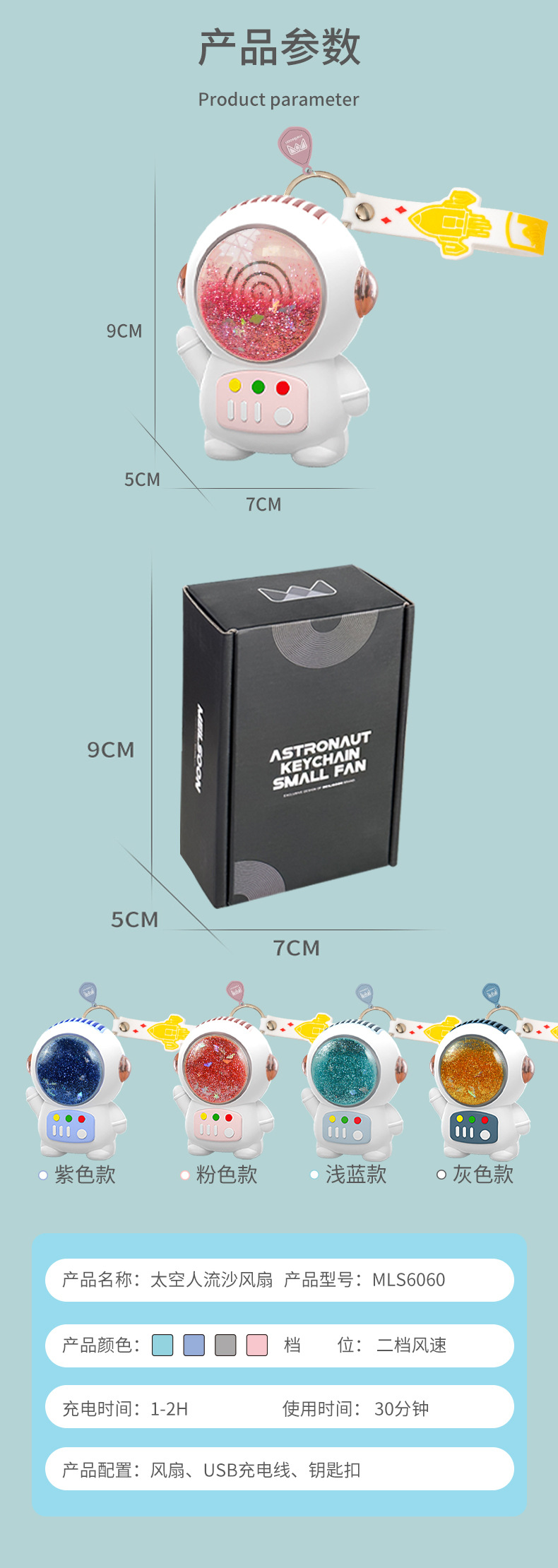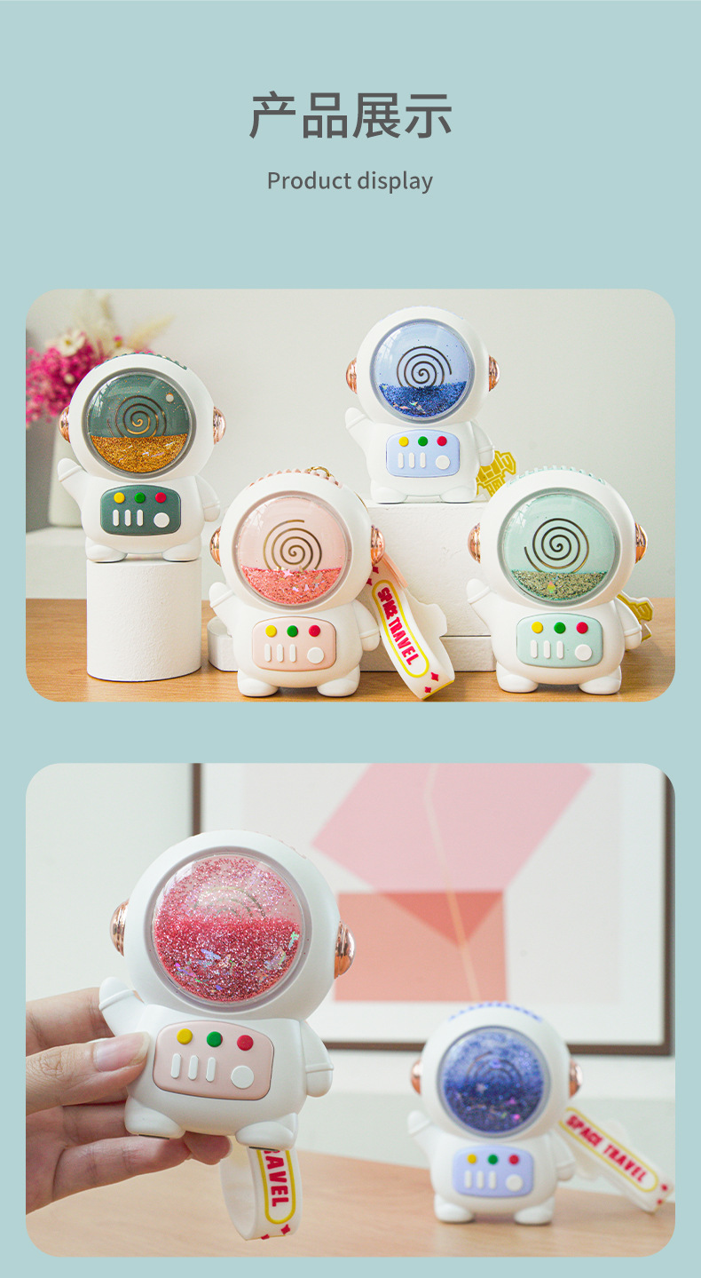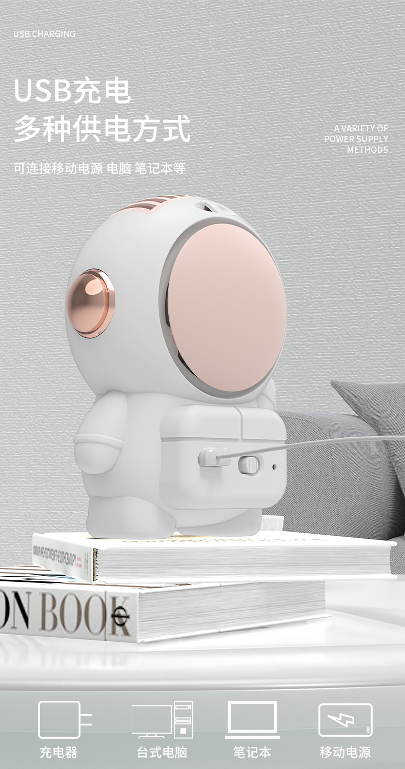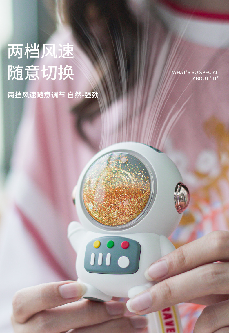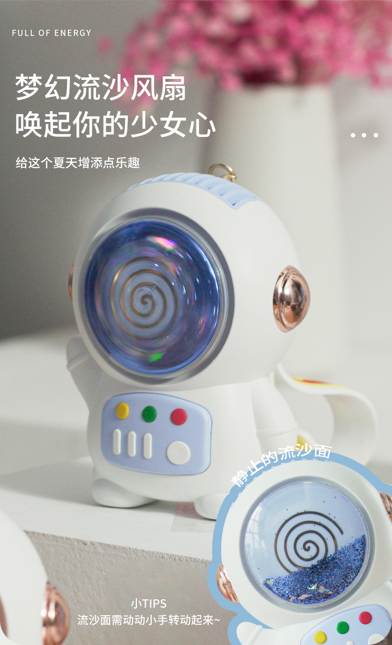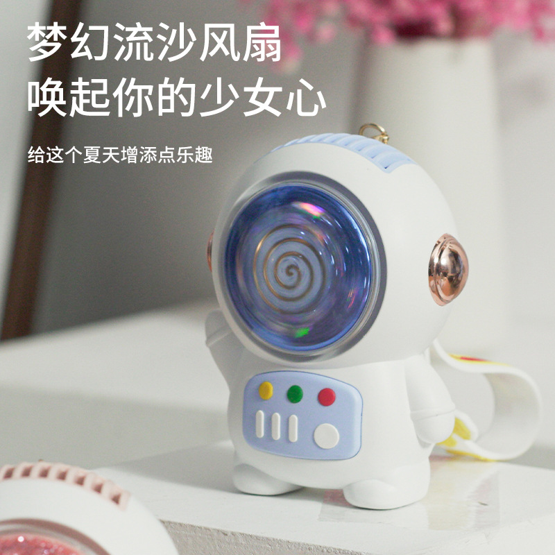 卡通太空人流沙风扇挂绳便携学生可爱迷你USB充电手持无叶小风扇