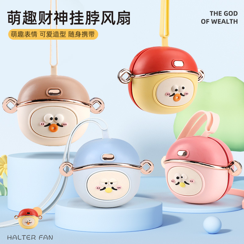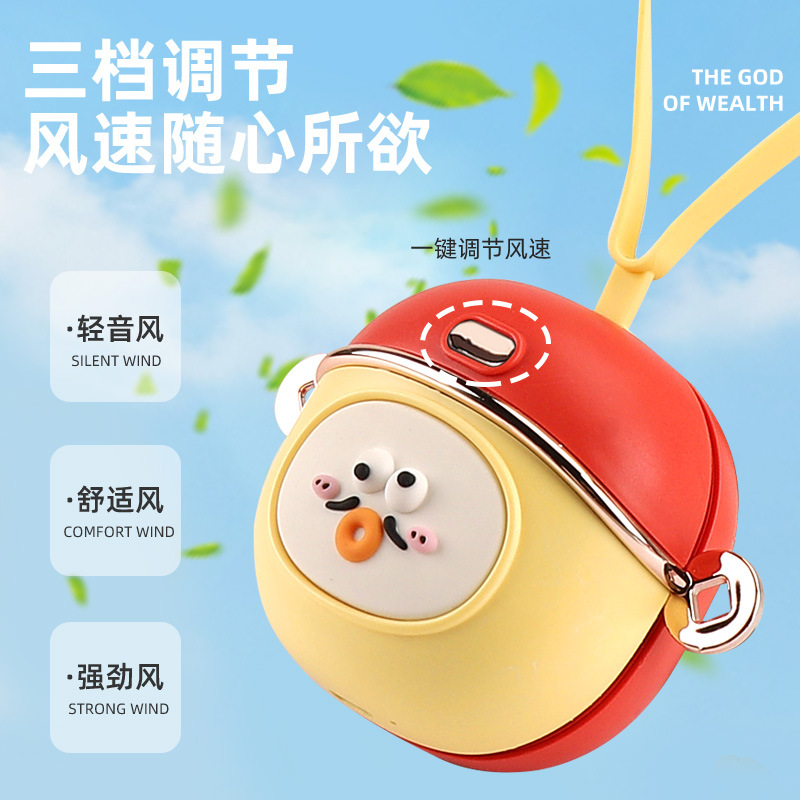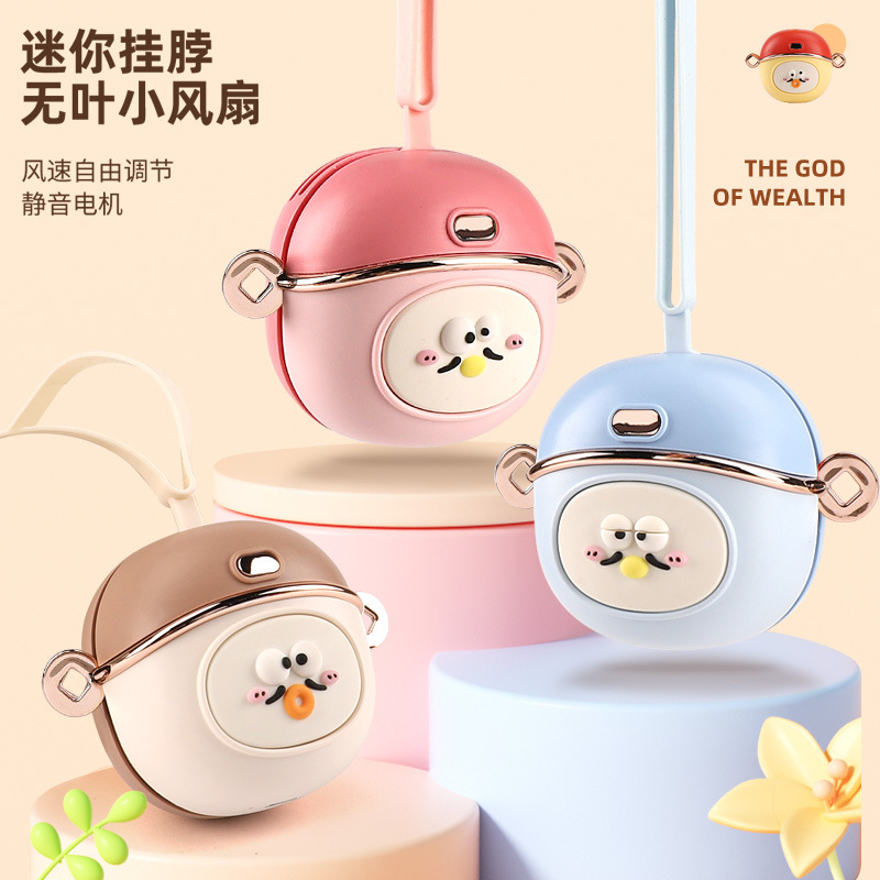 萌趣财神挂脖小风扇无叶便携小风扇USB充电式挂脖小电风扇