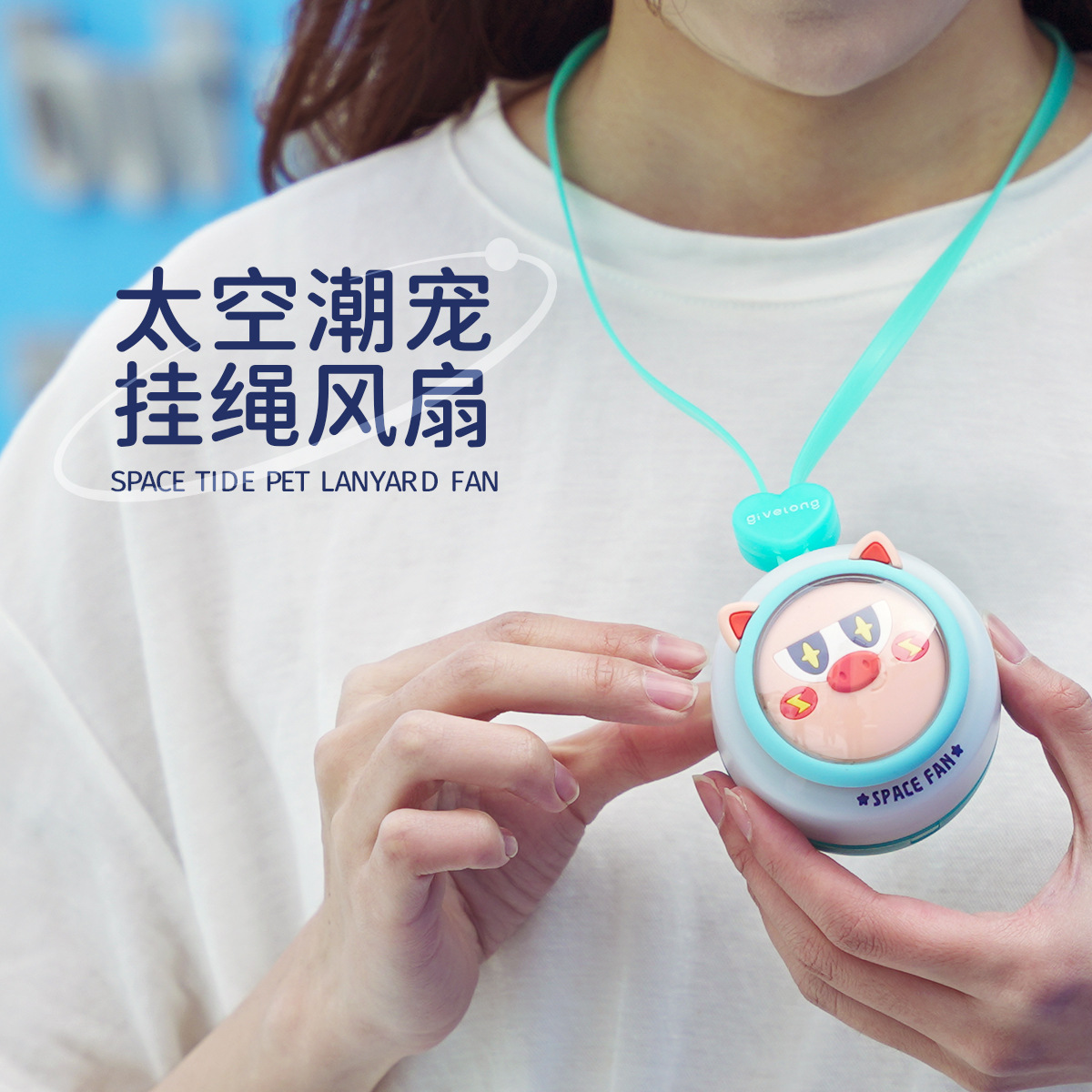 太空潮宠挂绳风扇无叶便携式挂脖小风扇USB充电式小电扇