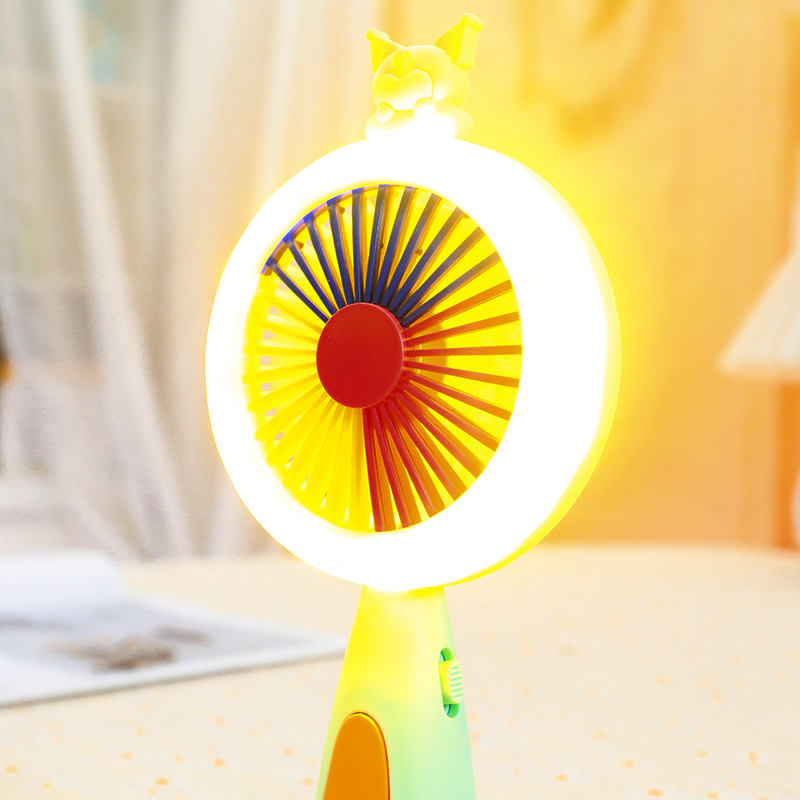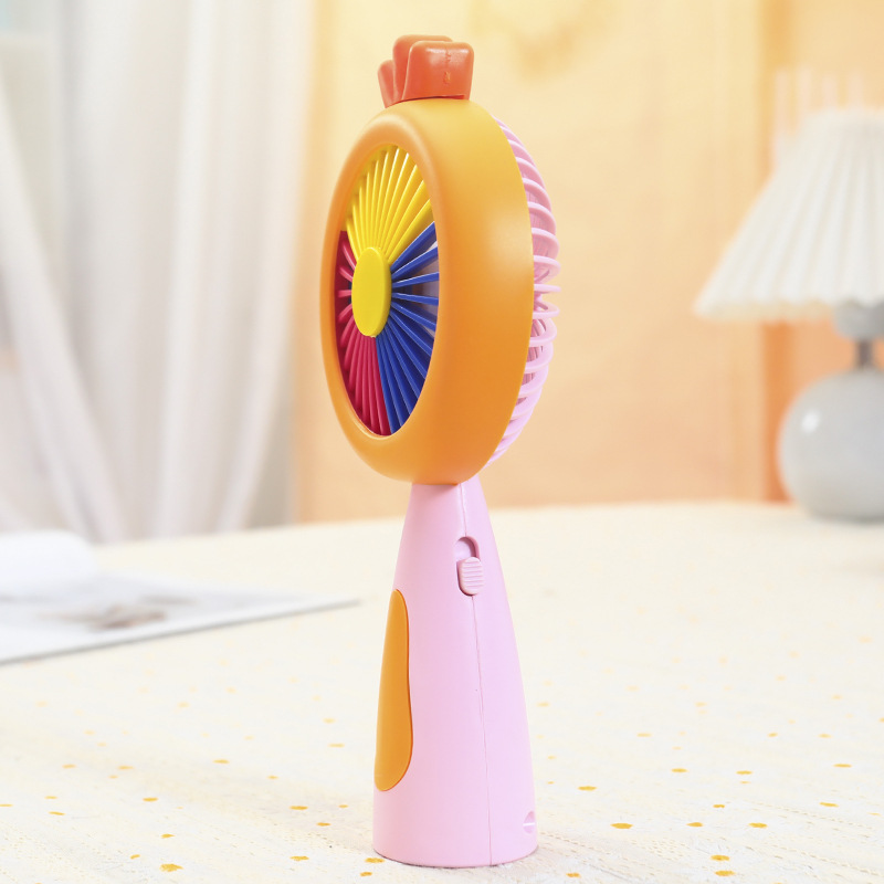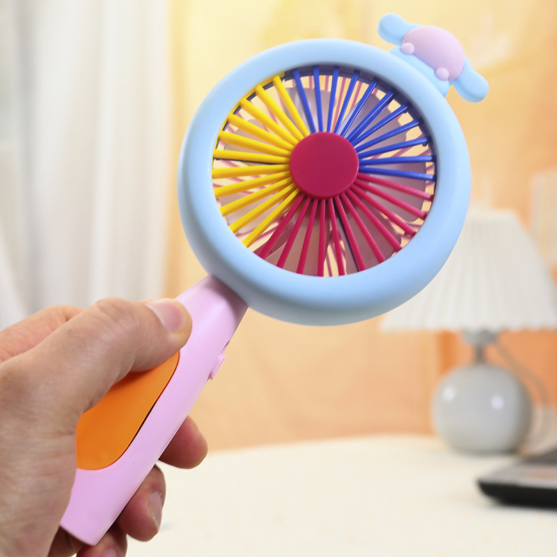 网红多巴胺拼色手持灯光充电usb风扇 学生卡通桌面二档风扇