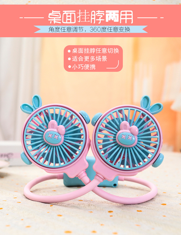 网红折叠懒人挂脖风扇 便携式USB桌面小风扇学生宿舍小型电风扇